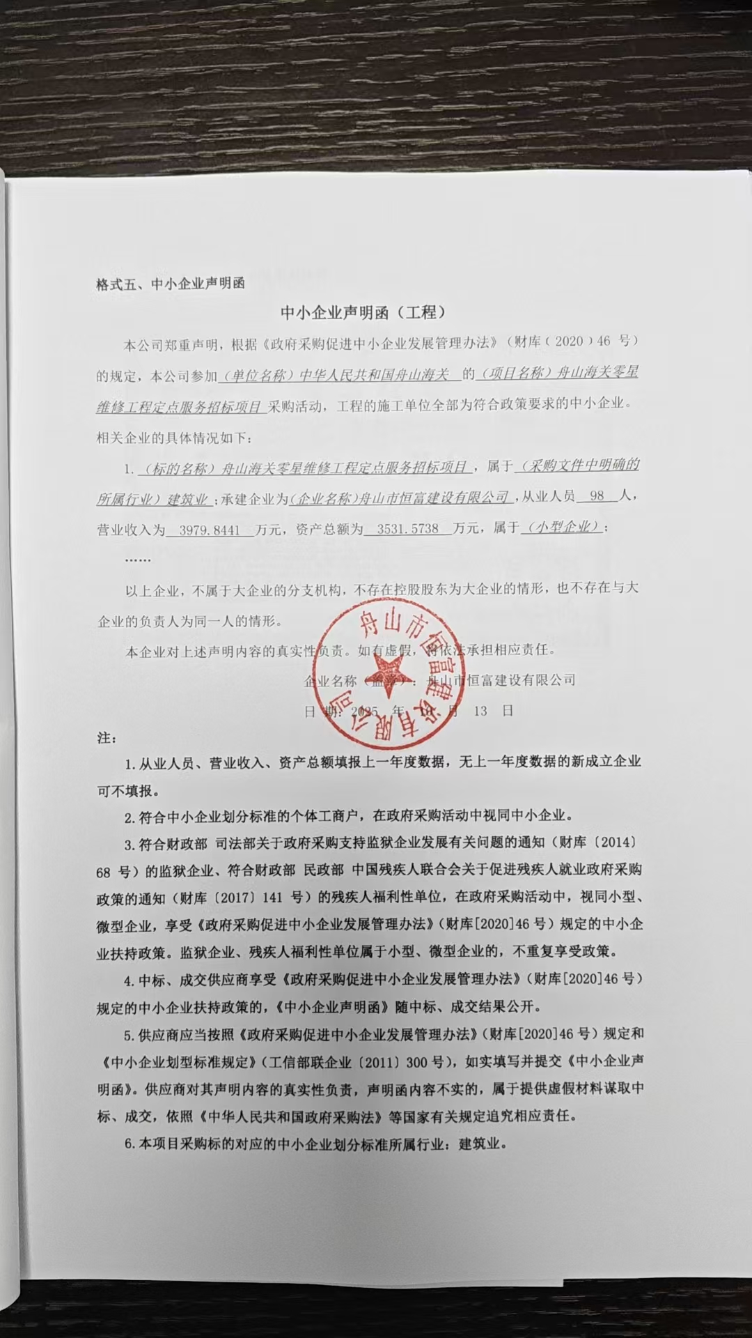 中华人民共和国舟山海关零星维修工程定点服务招标项目中标公告(重新招标)