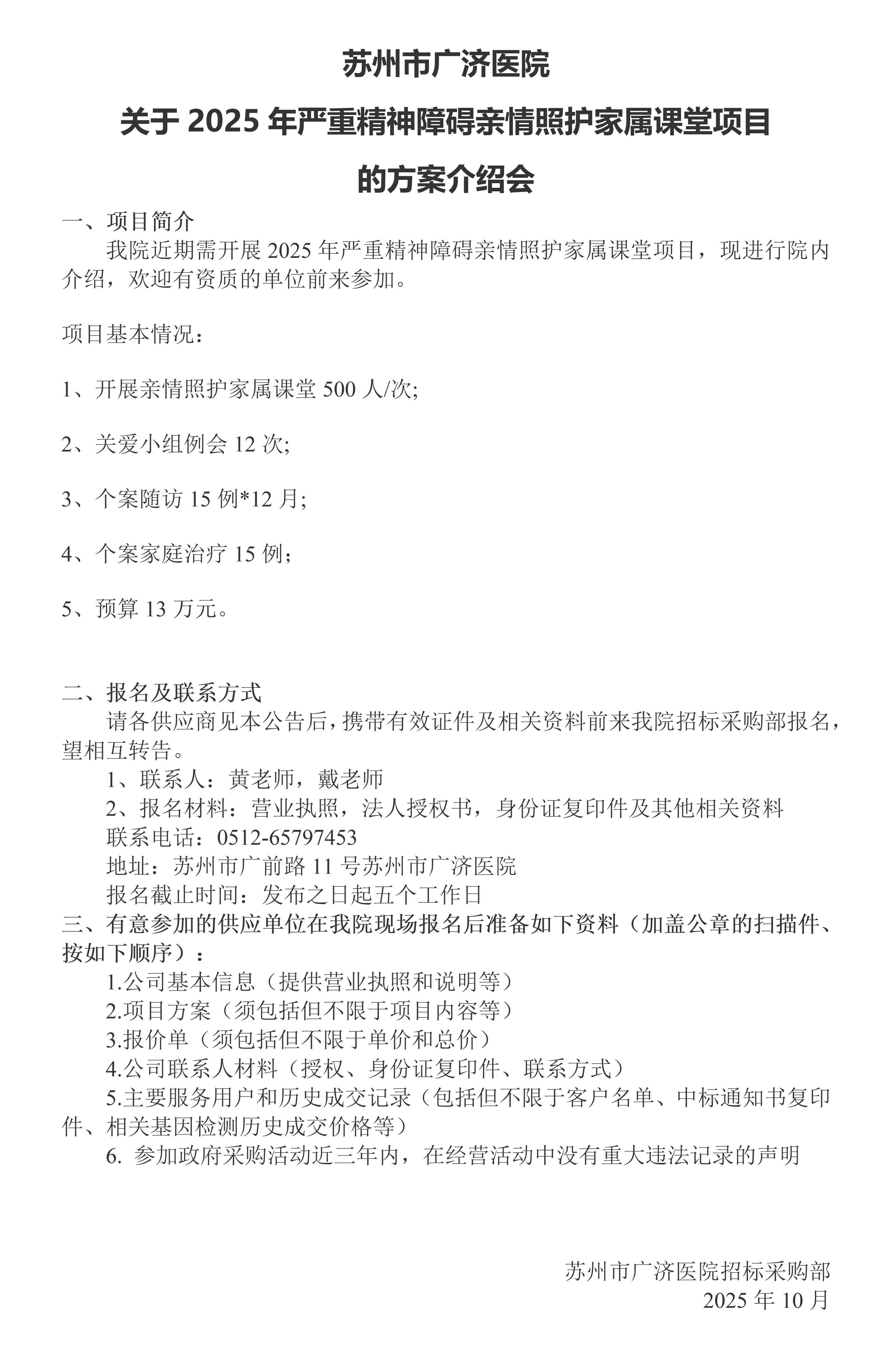 苏州市广济医院关于2025年严重精神障碍亲情照护家属课堂项目的方案介绍会