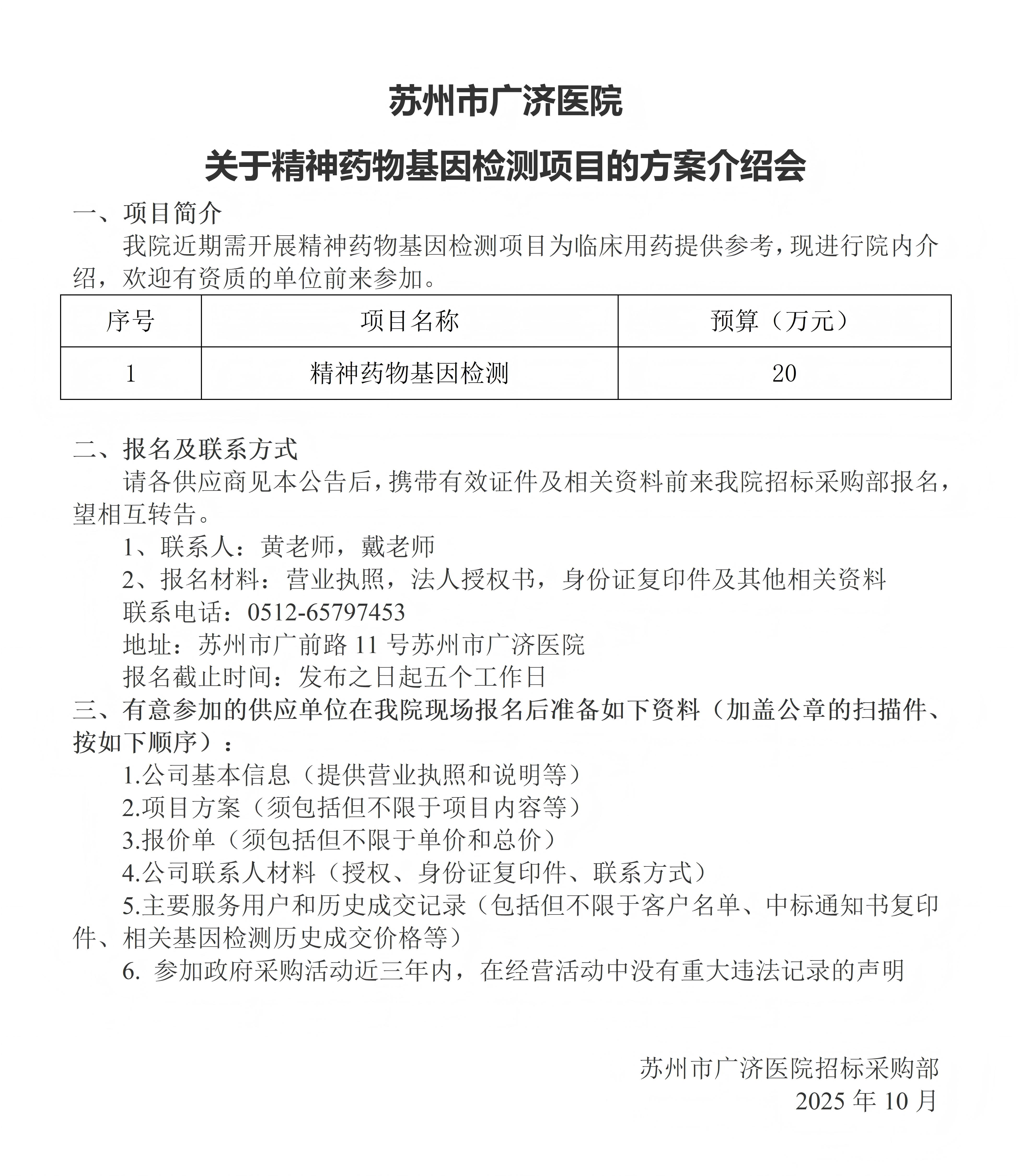 苏州市广济医院关于精神药物基因检测项目的方案介绍会