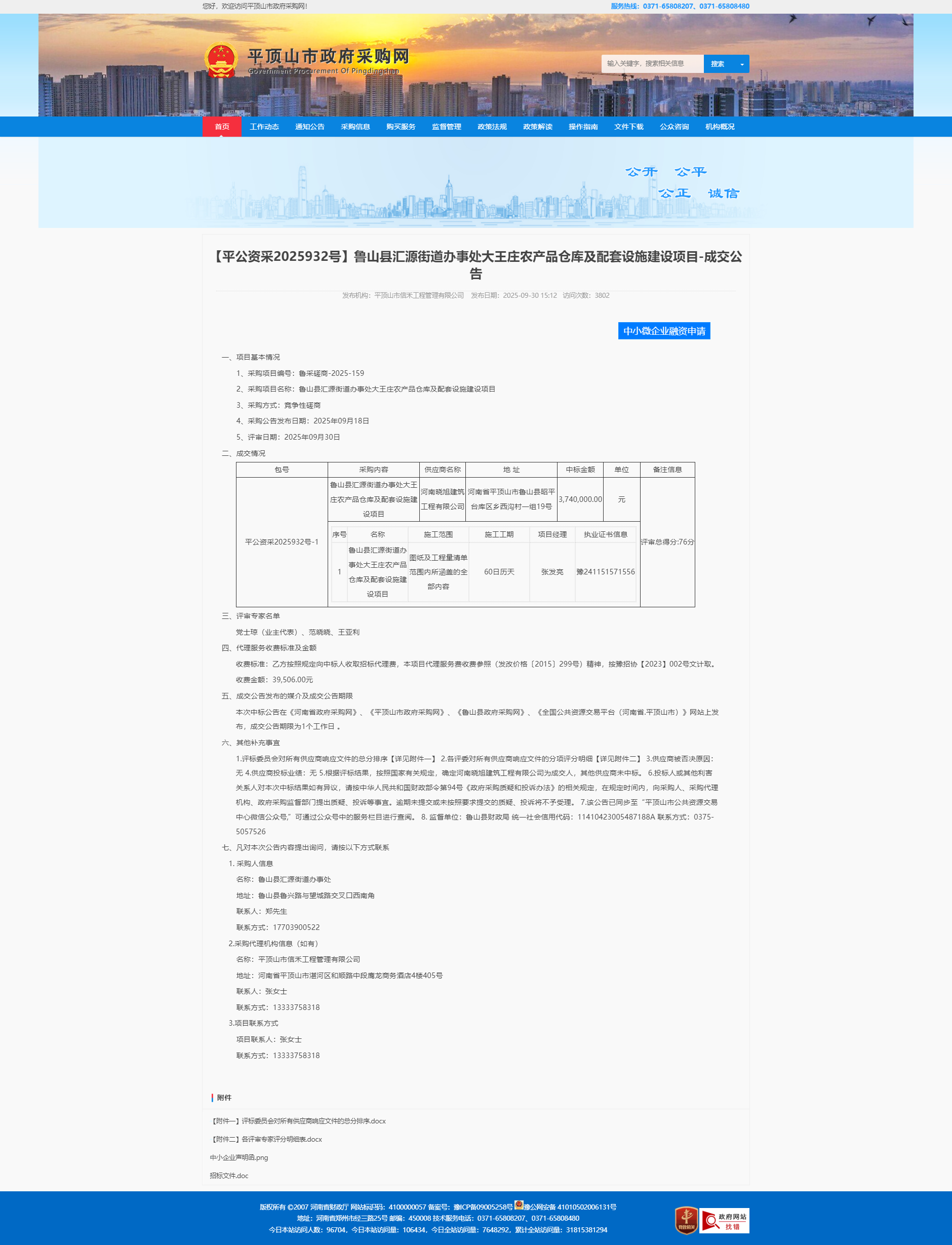 | 二、合同名称:鲁山县汇源街道办事处大王庄农产品仓库及配套设施建设项目 | ||||||||||||