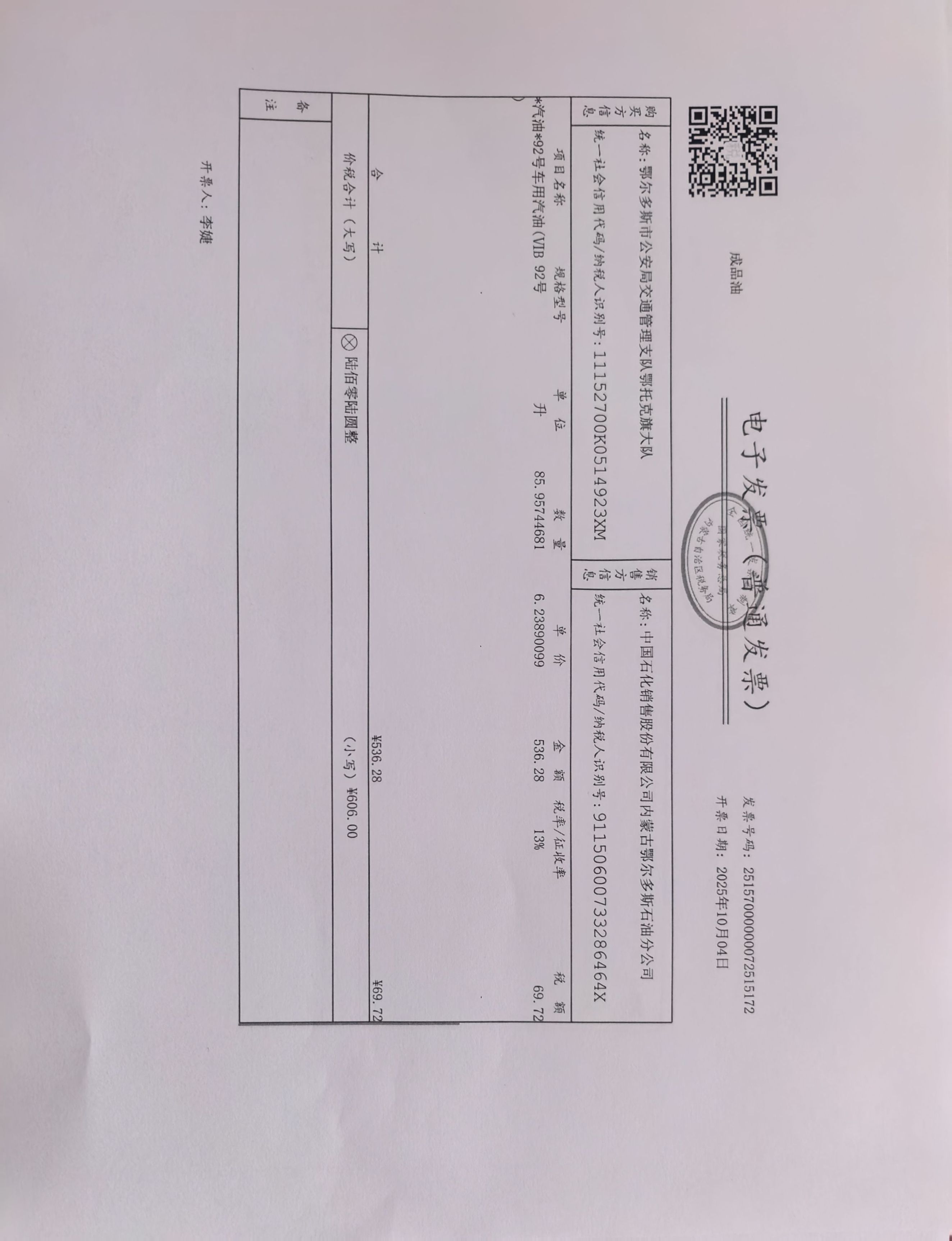 鄂尔多斯市公安局交通管理支队鄂托克旗大队鄂旗交管大队车辆燃油费政府采购合同公告