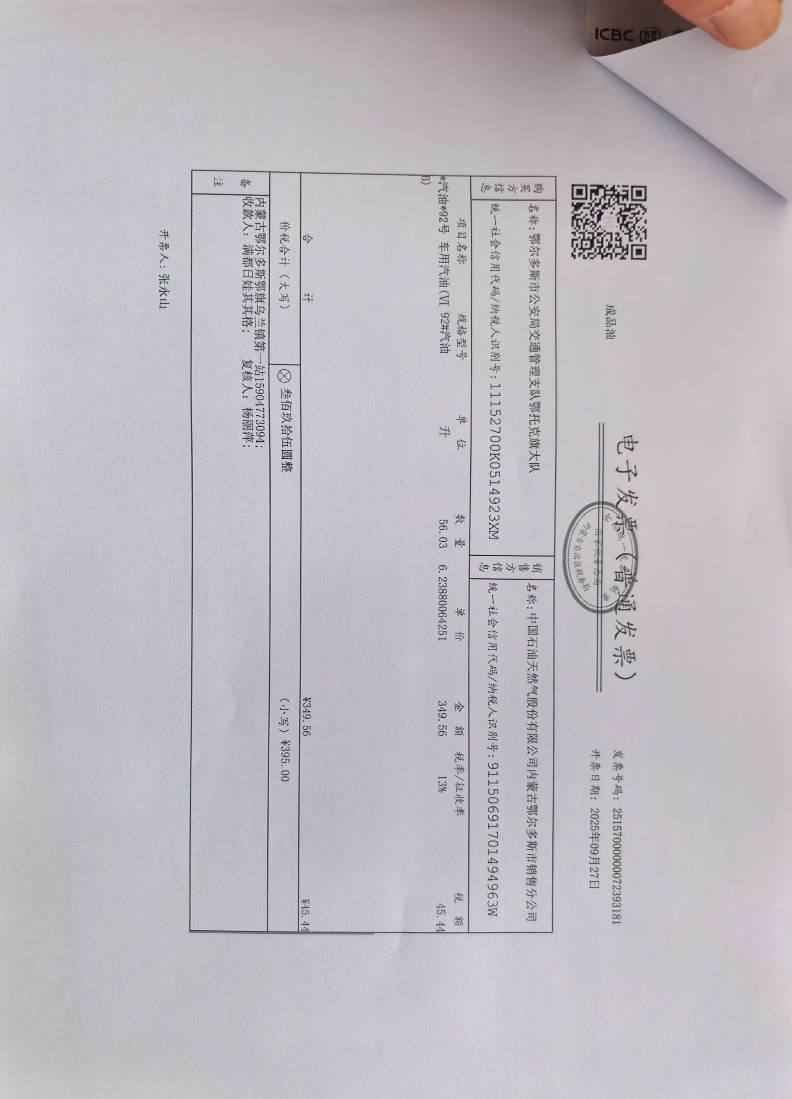 一、合同编号:*************二、合同名称:鄂旗交管大队车辆燃油费三、项目编号:鄂财购备字(电子)[****]*****号四、项目名称:车辆燃油费五、合同主体采购人(甲方):鄂尔多斯市公安局交通管理支队鄂托克旗大队 地址:鄂托克旗乌兰镇 联系方式:*********** 供应商(乙方):中国石油天然气股份有限公司内蒙古销售分公司 地址:内蒙古自治区呼和浩特市新城区成吉思汗大街 联系方式:************ 六、合同主要信息主要标的: