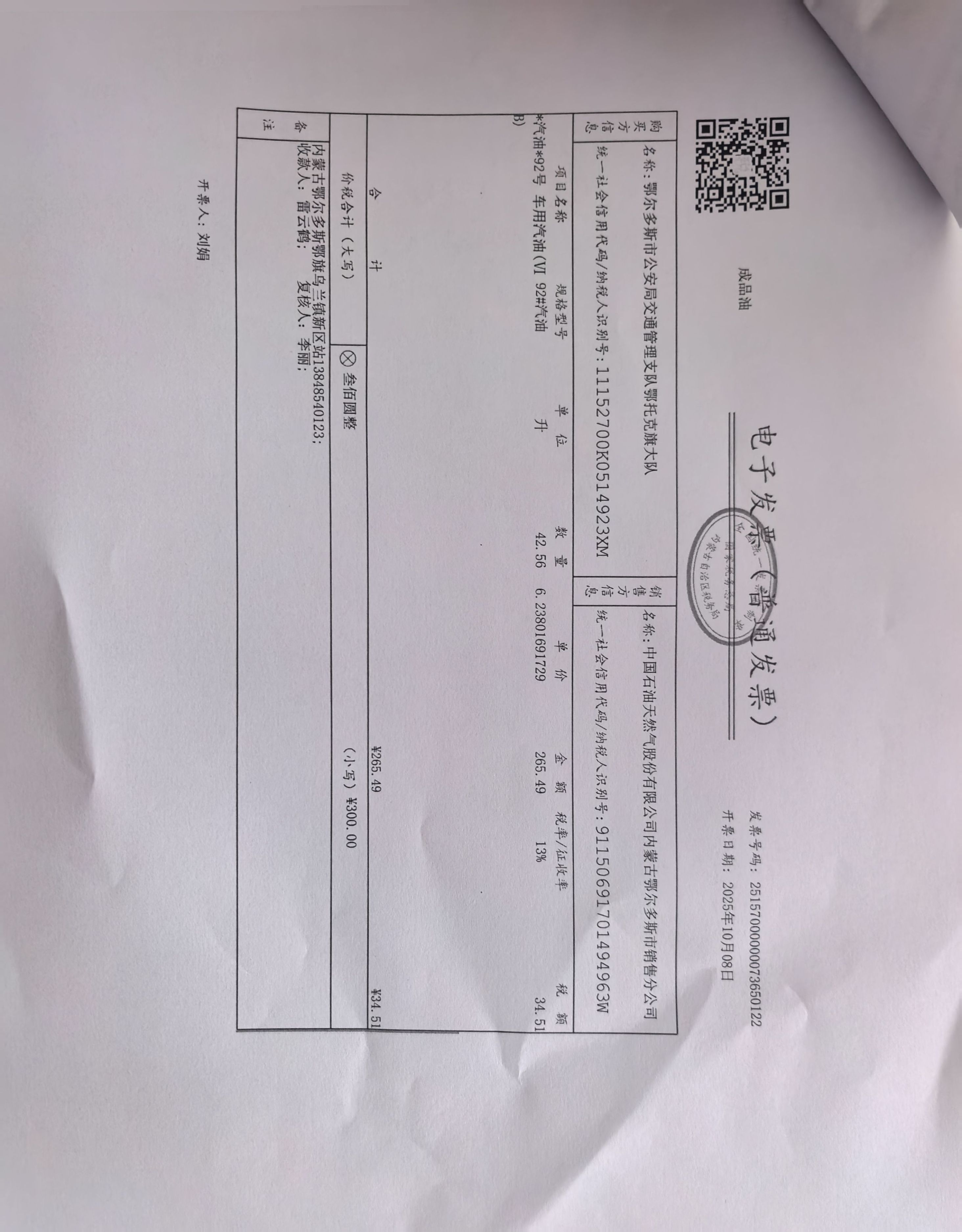 一、合同编号:*************二、合同名称:鄂旗交管大队车辆燃油费三、项目编号:鄂财购备字(电子)[****]*****号四、项目名称:车辆燃油费五、合同主体采购人(甲方):鄂尔多斯市公安局交通管理支队鄂托克旗大队 地址:鄂托克旗乌兰镇 联系方式:*********** 供应商(乙方):中国石油天然气股份有限公司内蒙古销售分公司 地址:内蒙古自治区呼和浩特市新城区成吉思汗大街 联系方式:************ 六、合同主要信息主要标的: