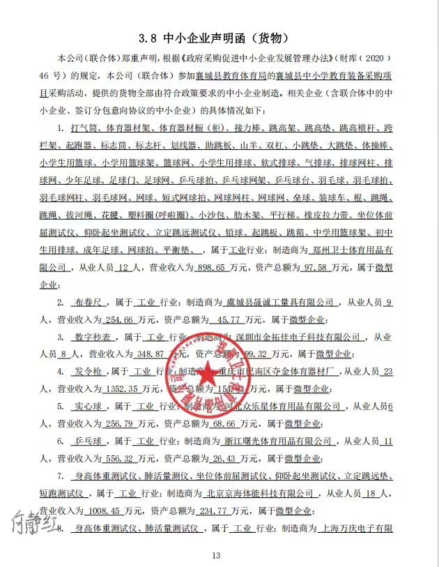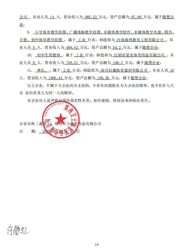 - 郑州卫士体育用品有限公司三标中小企业声明函*.***