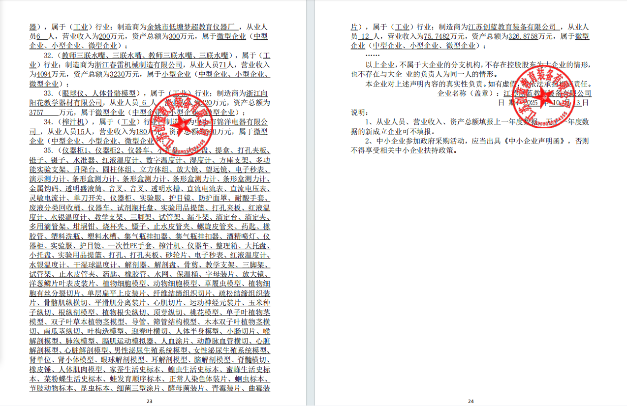 - 江苏创蓝教育装备有限公司中小企业声明函 (*).***