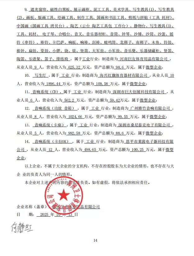 - 郑州卫士体育用品有限公司中小企业声明函 (*).***