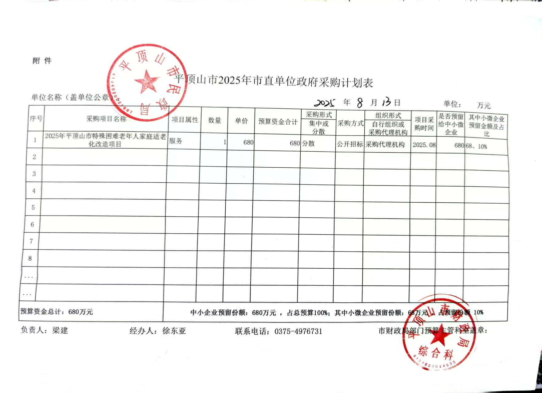 | 二、合同名称:平顶山市民政局特殊困难老年人家庭适老化改造项目 | ||||||||||||