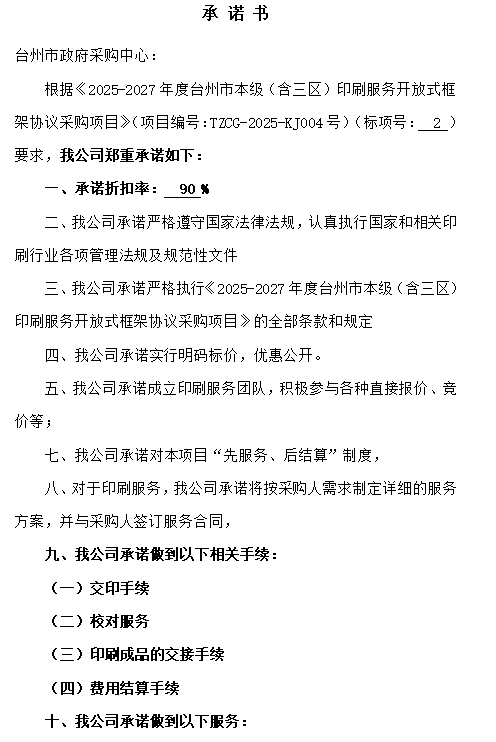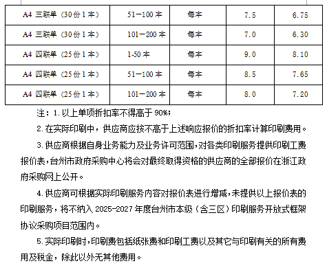 项目名称:*********年度台州市本级(含三区)印刷服务开放式框架协议采购项目