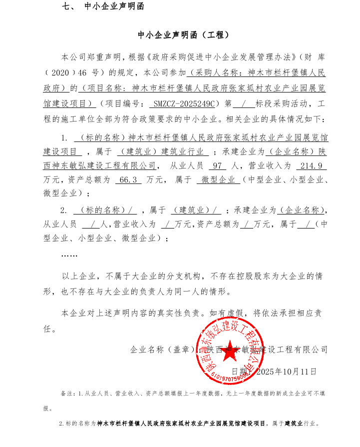 神木市栏杆堡镇人民政府张家坬村农业产业园展览馆建设项目成交结果公告