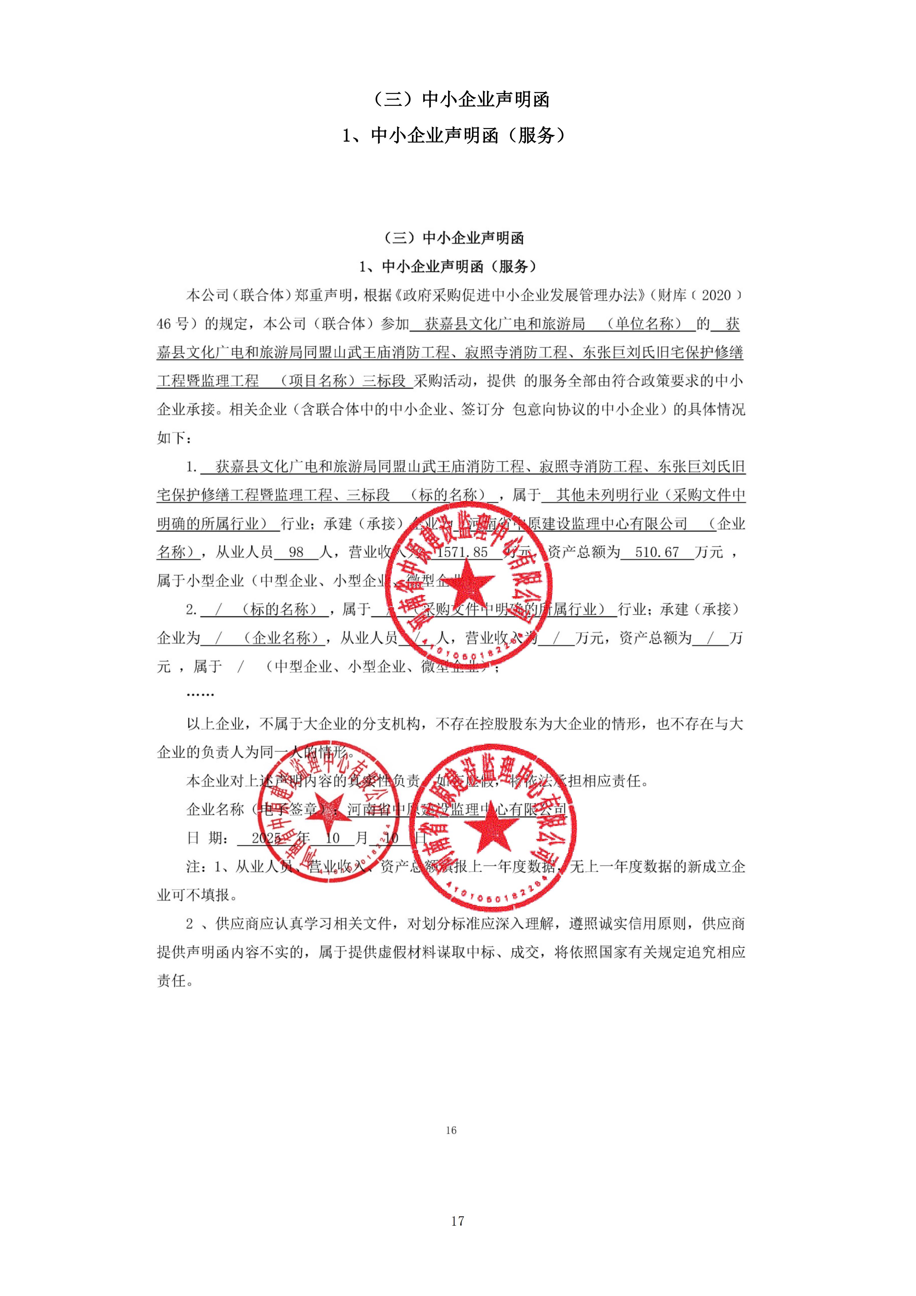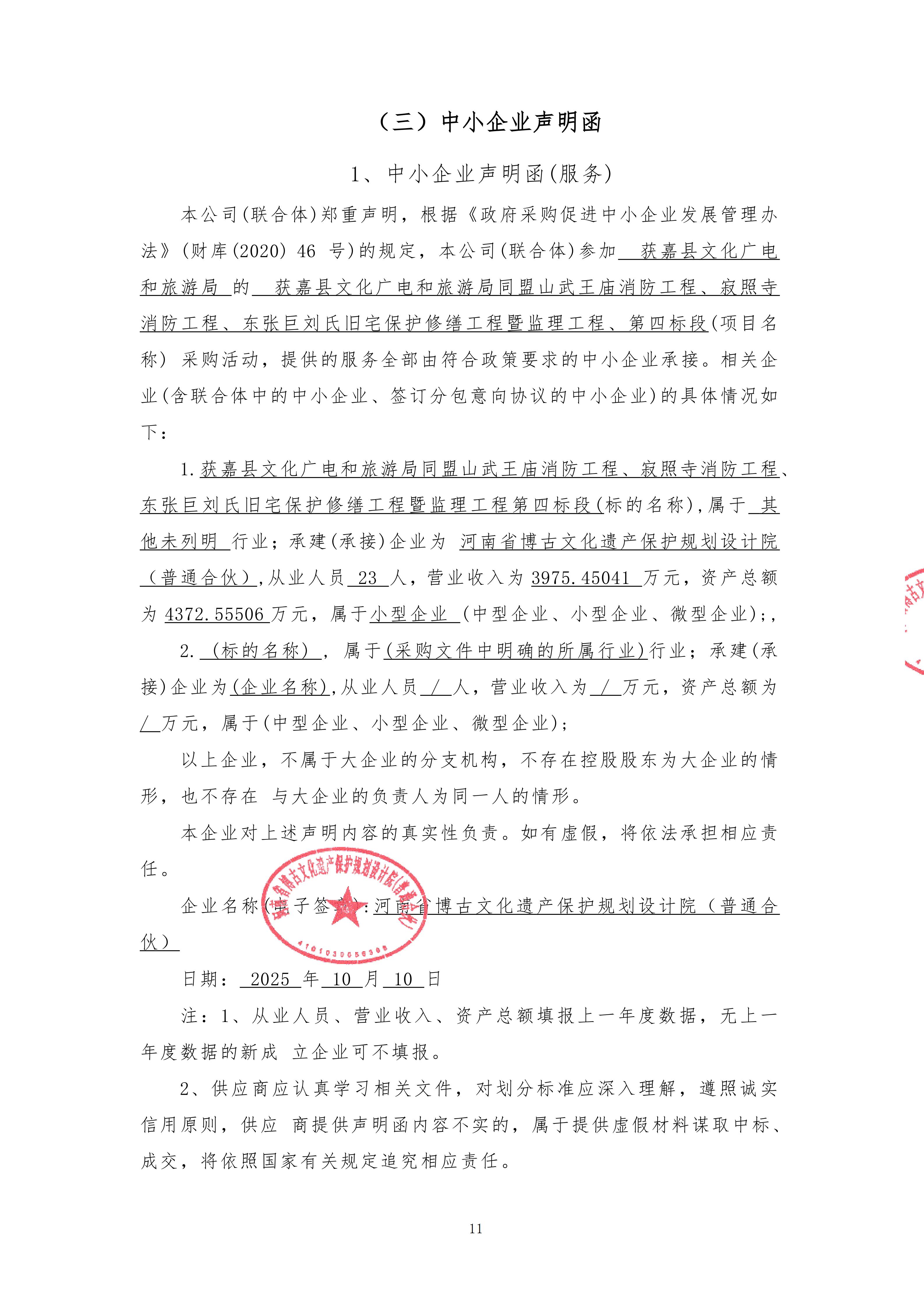 获嘉县文化广电和旅游局同盟山武王庙消防工程、寂照寺消防工程、东张巨刘氏旧宅保护修缮工程暨监理工程项目-中标公告