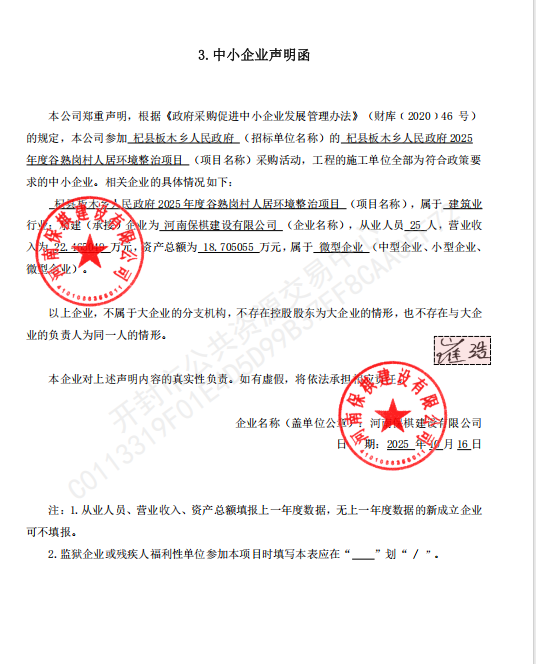 杞县板木乡人民政府2025年度谷熟岗村人居环境整治项目结果公告