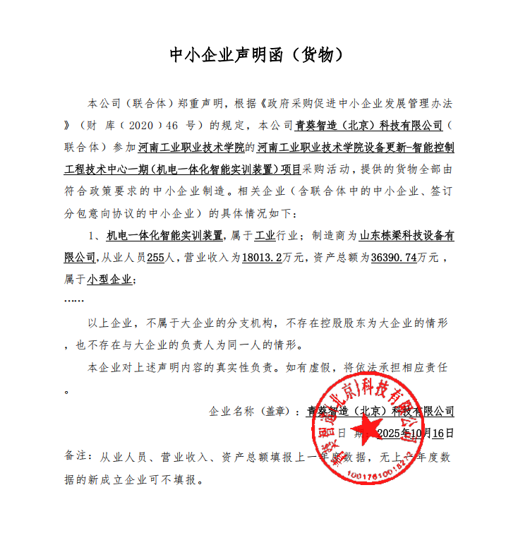 河南工业职业技术学院设备更新- 智能控制工程技术中心一期(机电一体化智能实训装置)项目-中标公告