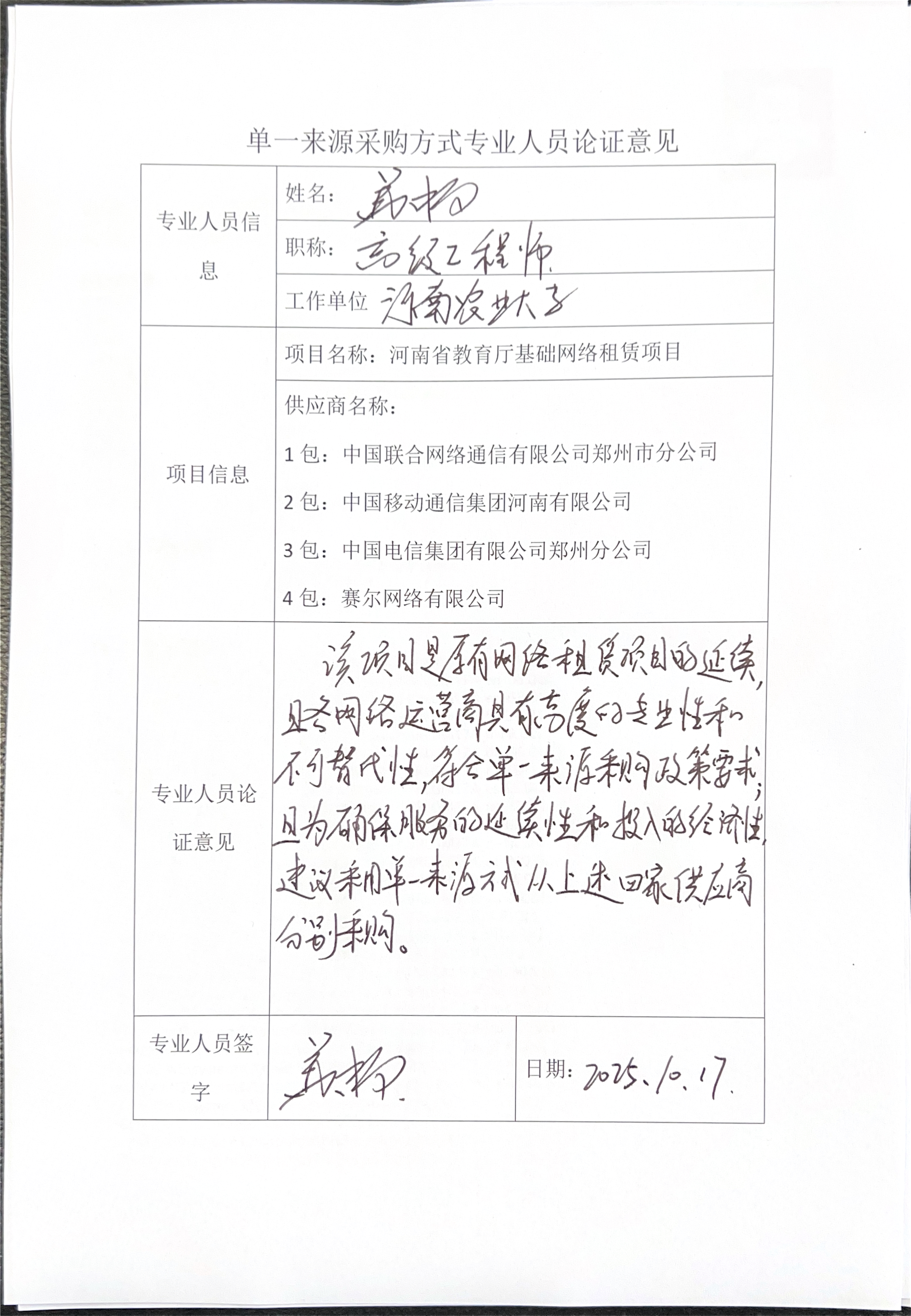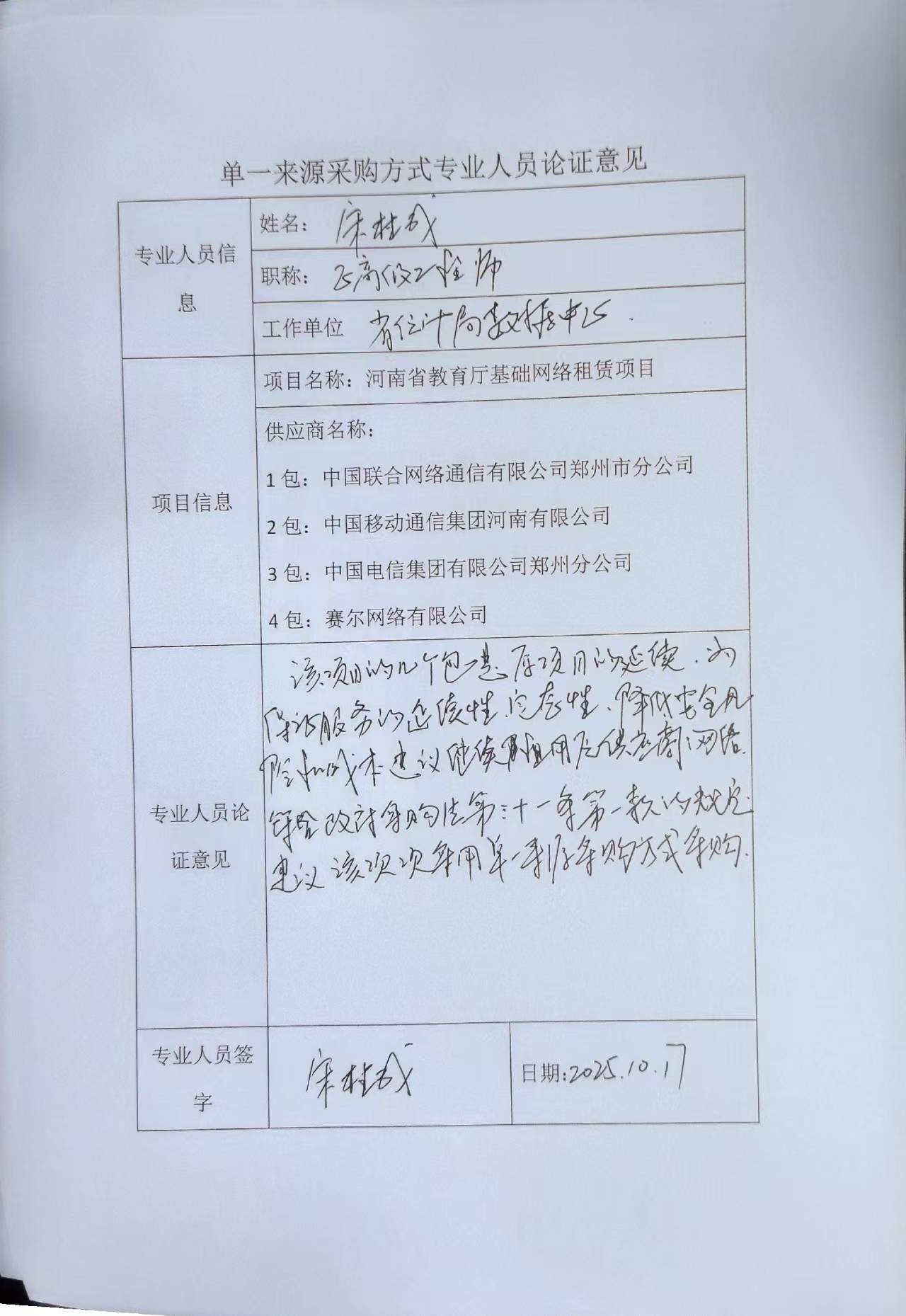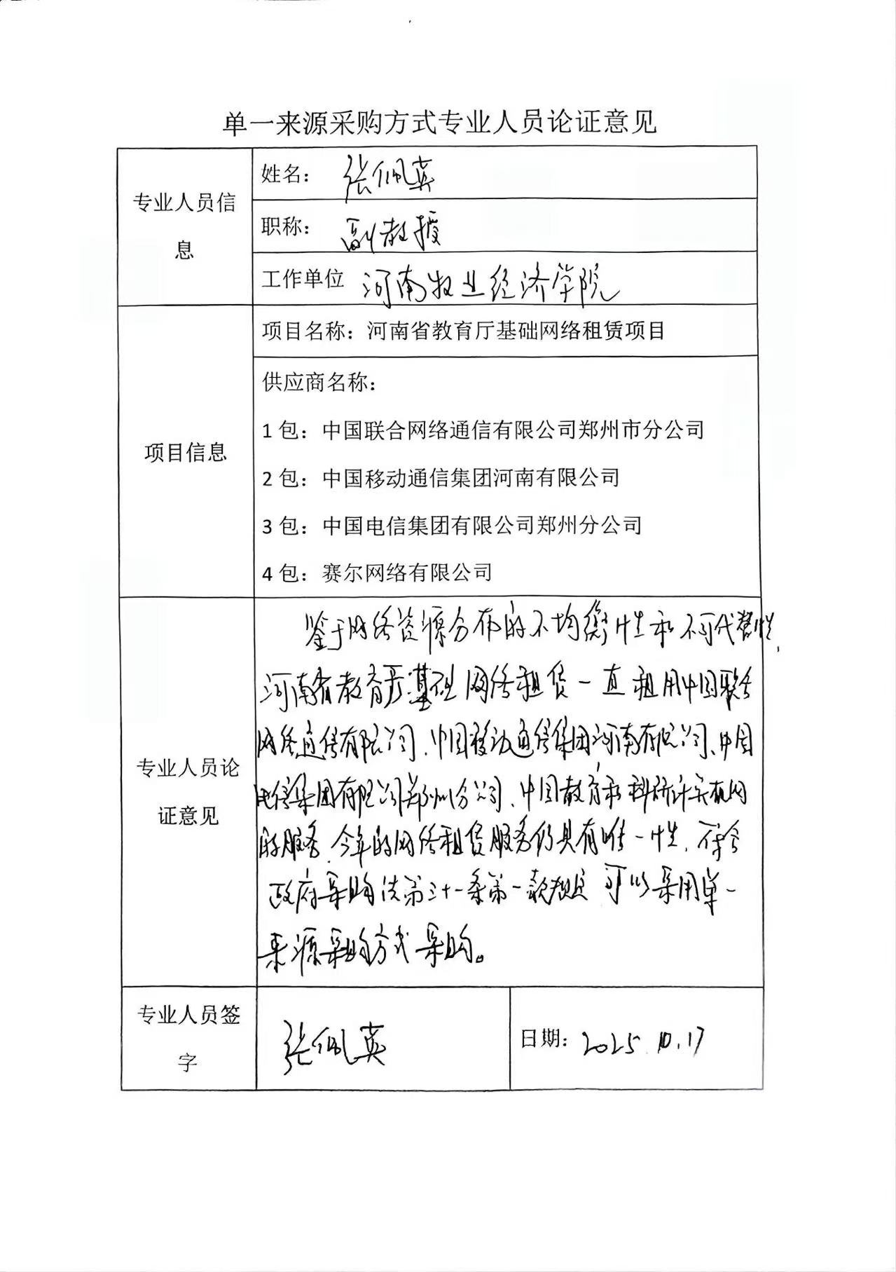 | *.*。为保证现有互联网访问资源的延续性及业务连续性,结合教育厅机关实际,现申请继续购买中国联合网络通信有限公司、中国移动通信集团河南有限公司、中国电信集团有限公司郑州分公司、中国教育和科研计算机网租赁服务。鉴于网络资源分布的不均衡性和不可代替性,特申请单一来源采购。 *.*本项目符合《中华人民共和国政府采购法》第三十一条第一款规定的:“只能从唯一供应商处采购”,建议进行单一来源采购。 | ||||||||||||||||