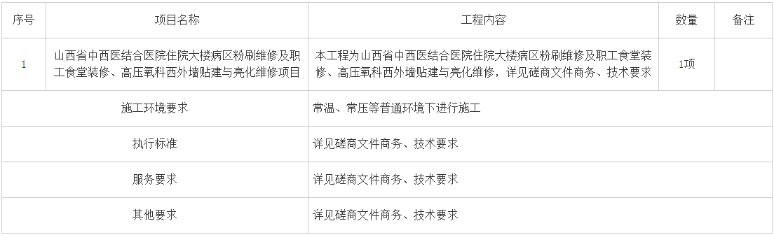 项目名称:山西省中西医结合医院住院大楼病区粉刷维修及职工食堂装修、高压氧科西外墙贴建与亮化维修项目
