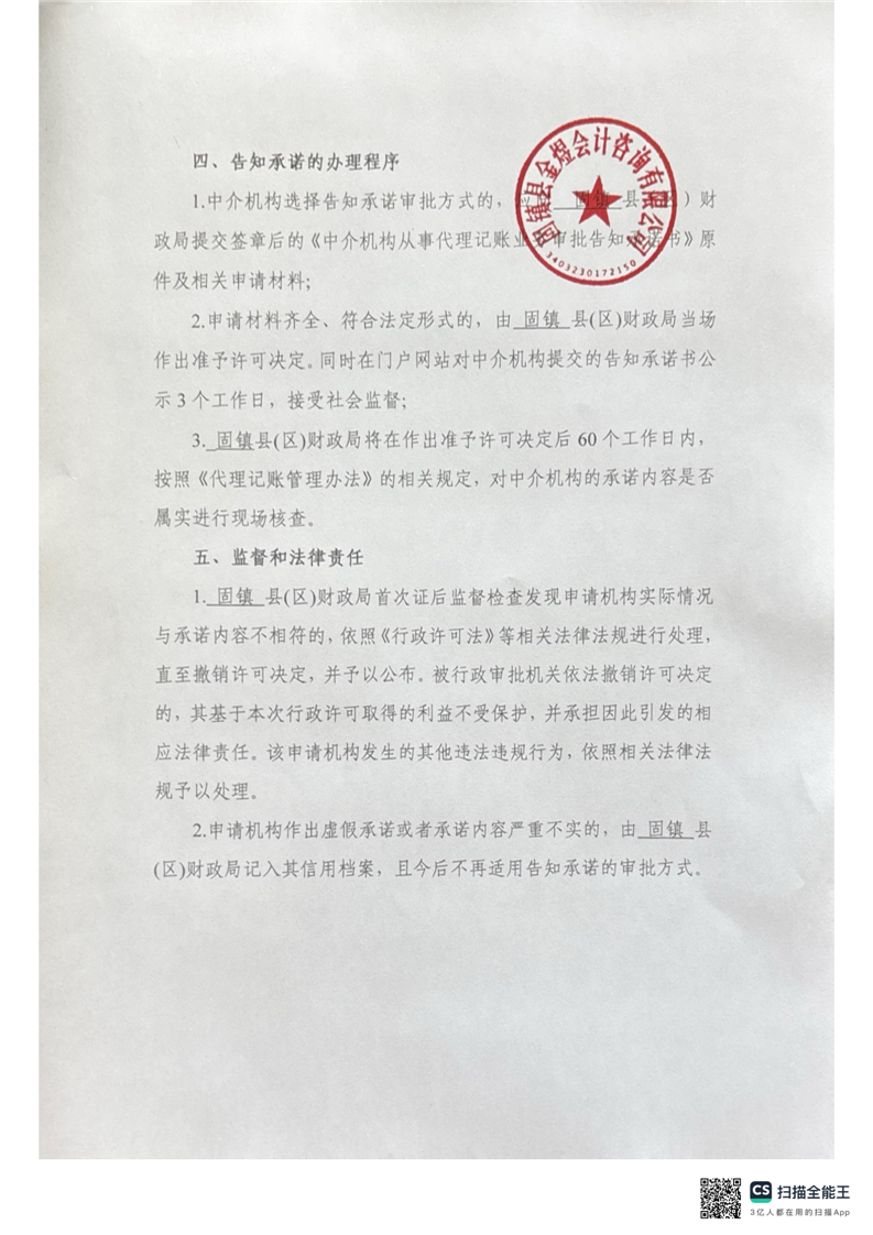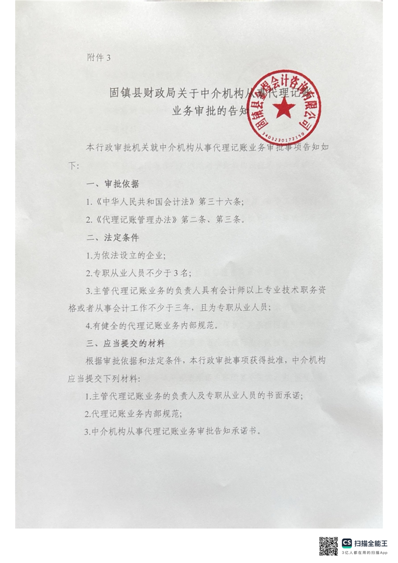 固镇县金煜会计咨询有限公司从事代理记账审批的告知