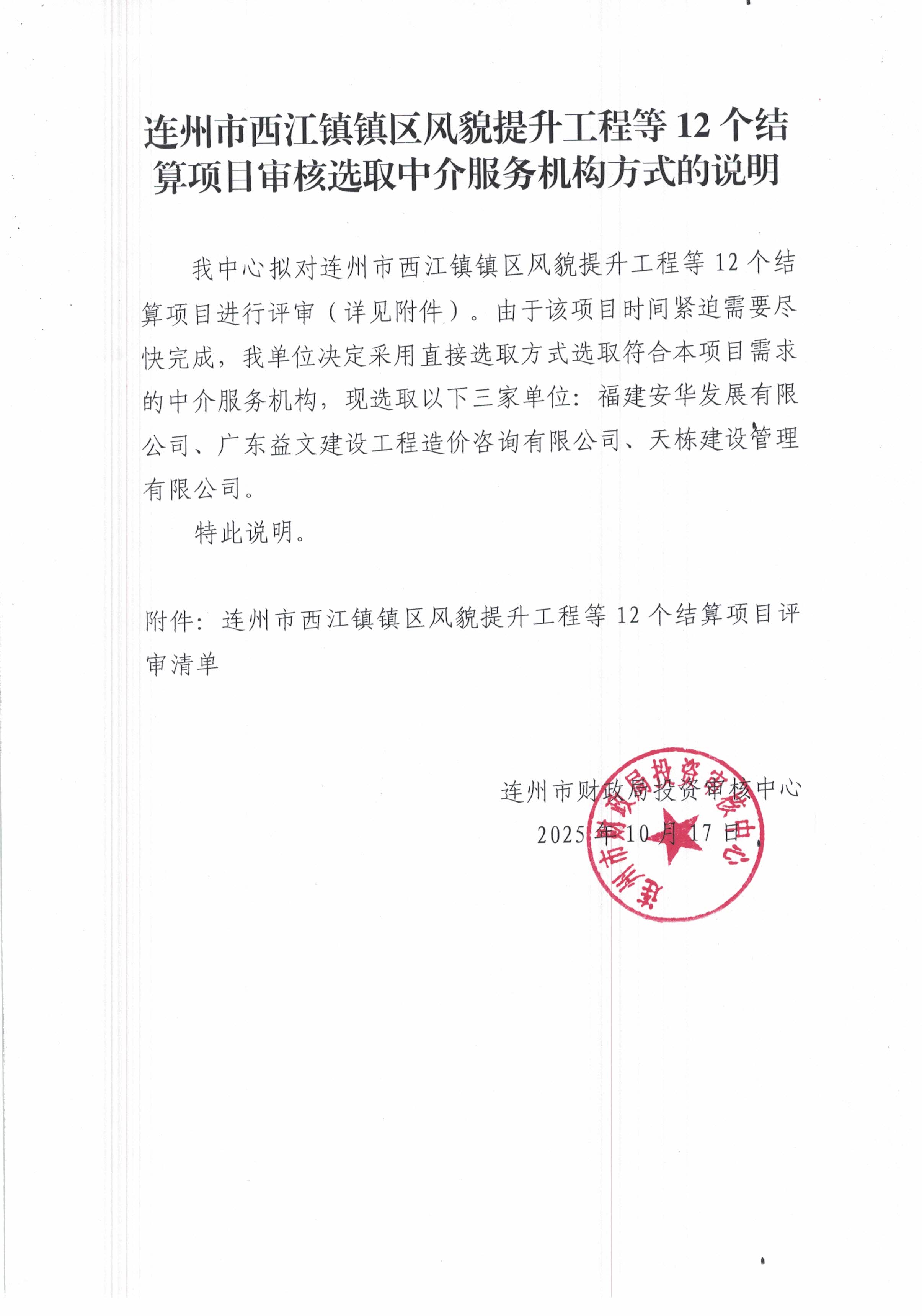 连州市西江镇镇区风貌提升工程等12个结算项目评审采购公告