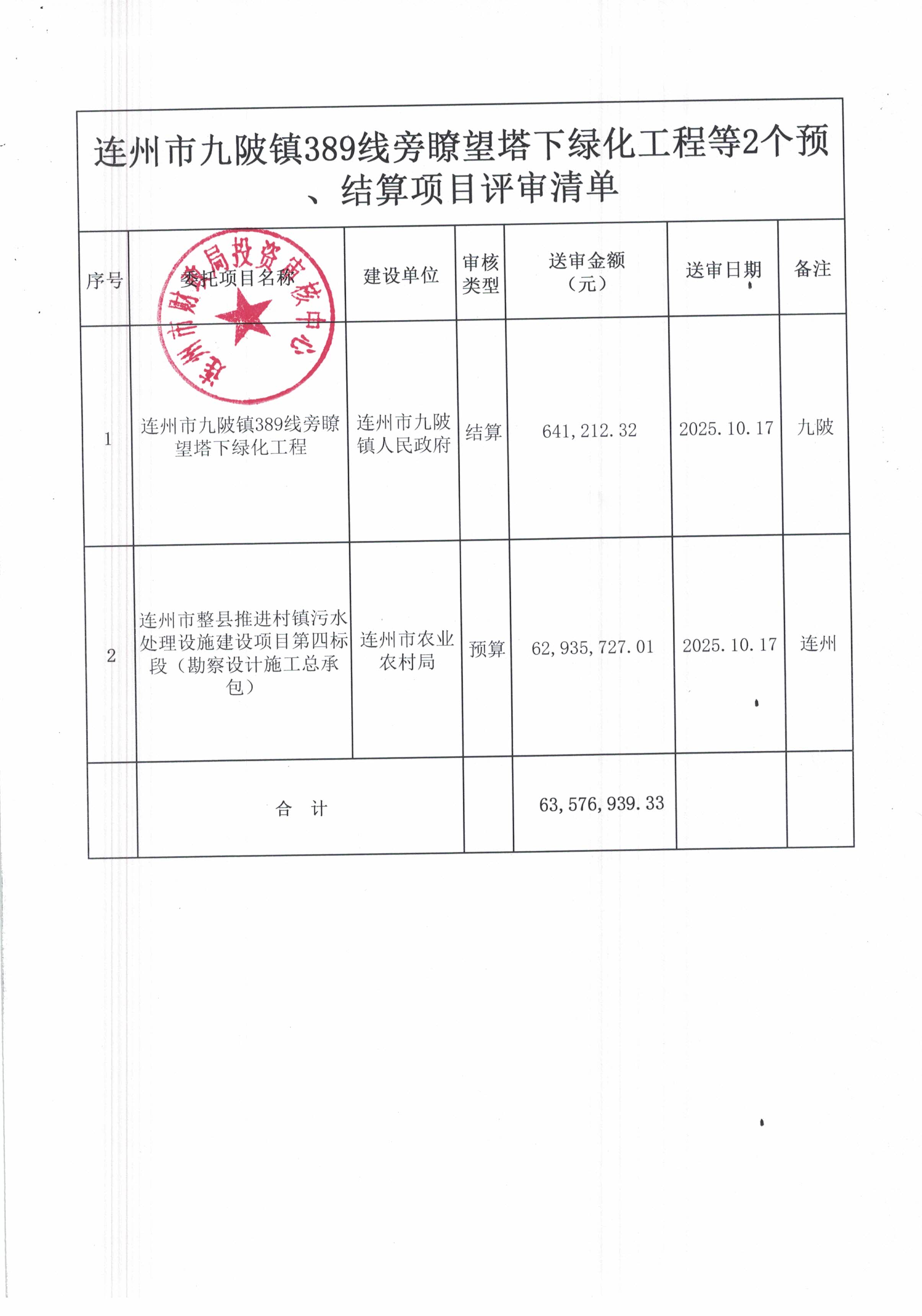 连州市九陂镇***线旁瞭望塔下绿化工程等*个预、结算项目评审