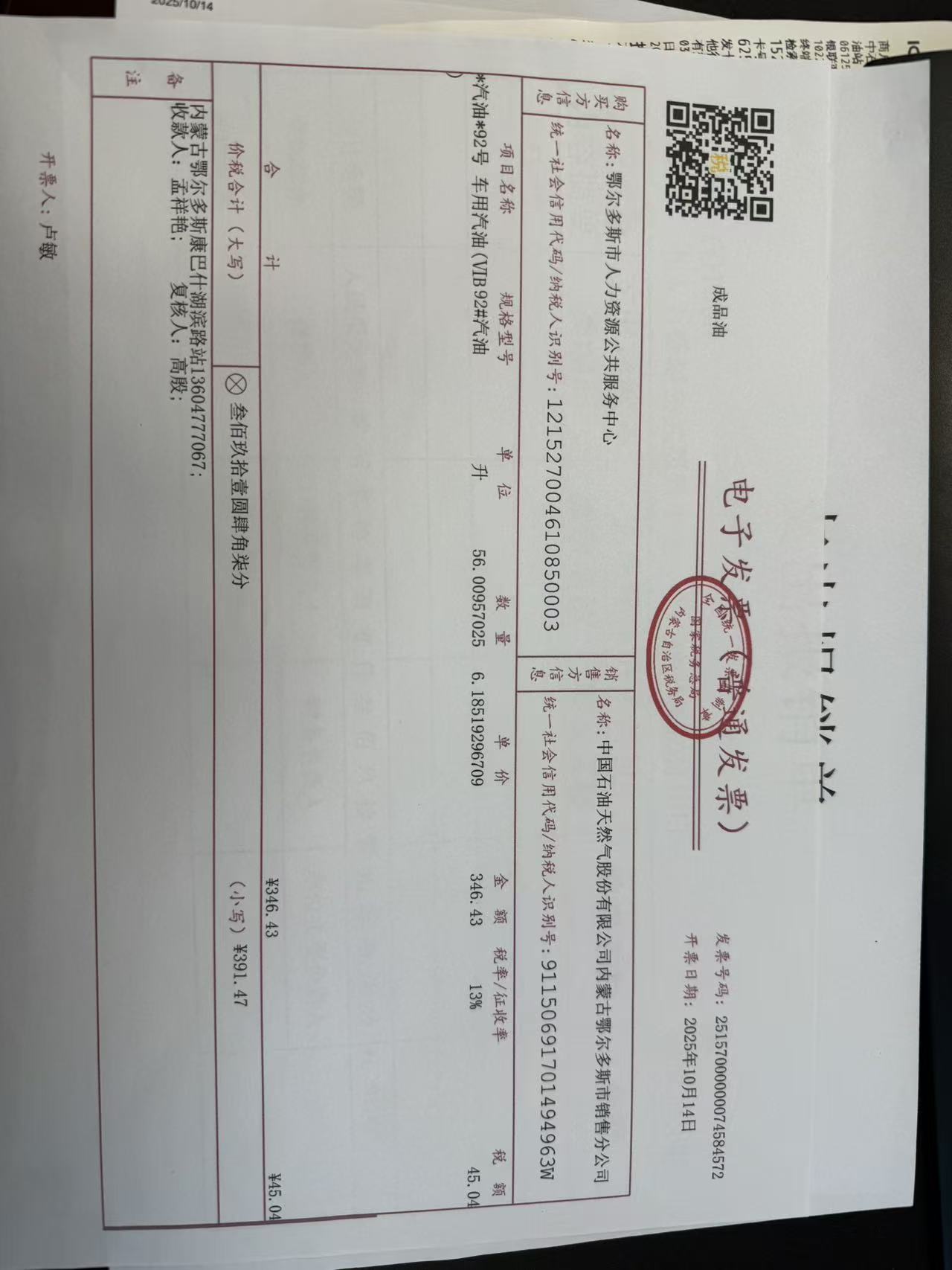 鄂尔多斯市人力资源公共服务中心公务用车加92号汽油政府采购合同公告