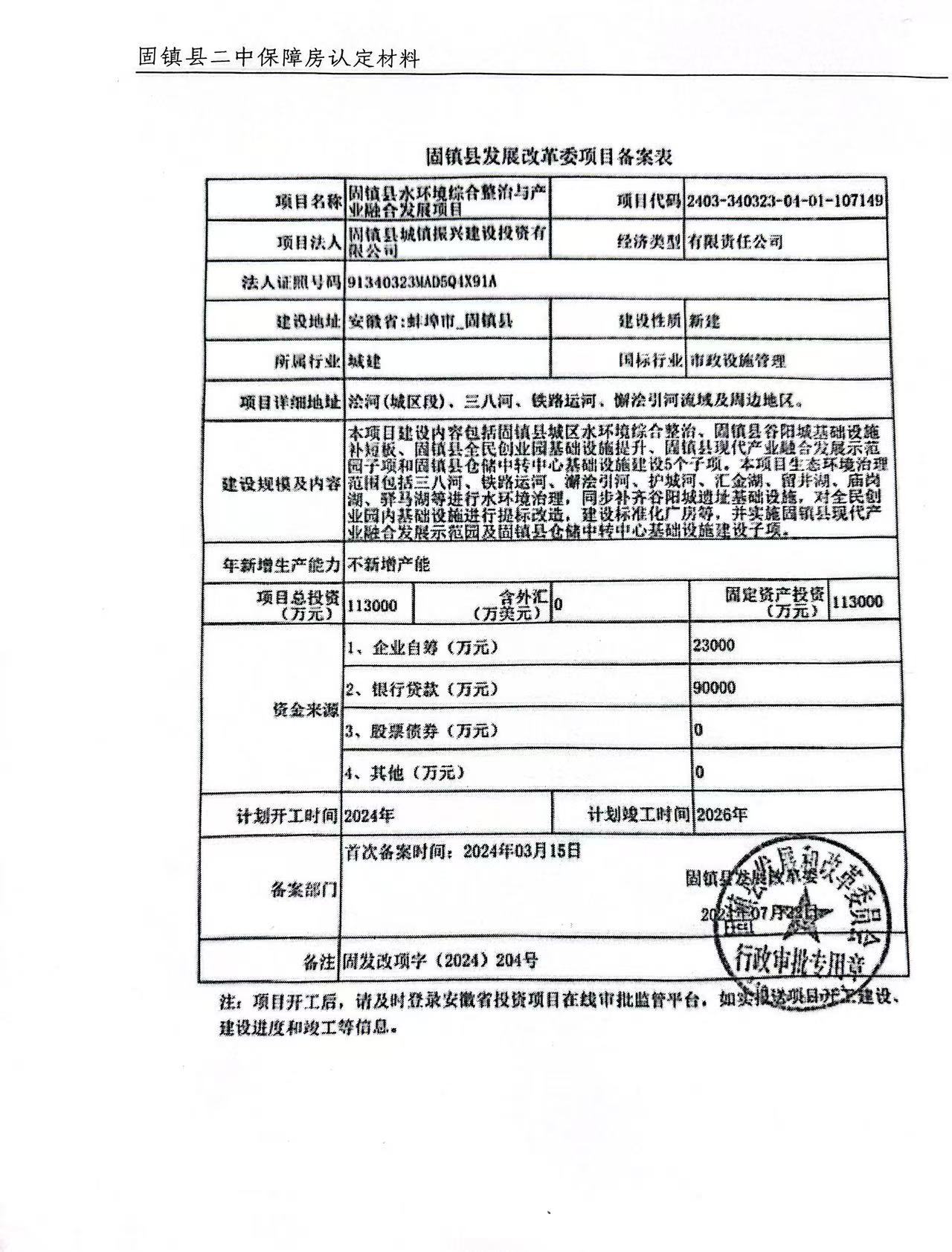 固镇县二中保障房立项信息