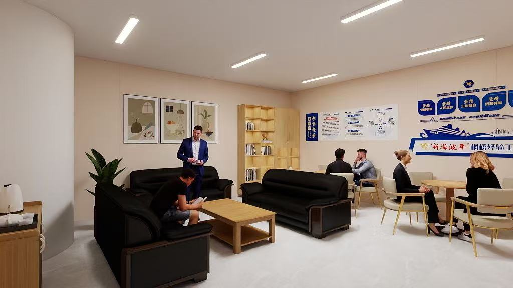 (二)根据海口港海关实际需求,对新海港枫桥经验工作室进行升级改造,项目具体内容主要包括将工作室进行分区改造,分别设立接待区、调解区、资料区,对墙面进行更新改造,重新布置电线线路插座和网线线路,定做资料柜、边柜,采购电视机、触摸查询一体机、桌椅沙发茶几、墙挂装饰及设计施工工作室文化墙。