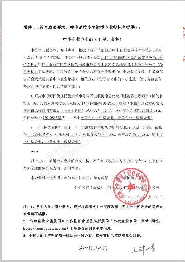开封市顺河回族区民族宗教事务局天主教河南总修院旧址消防工程项目第二标段*成交公告