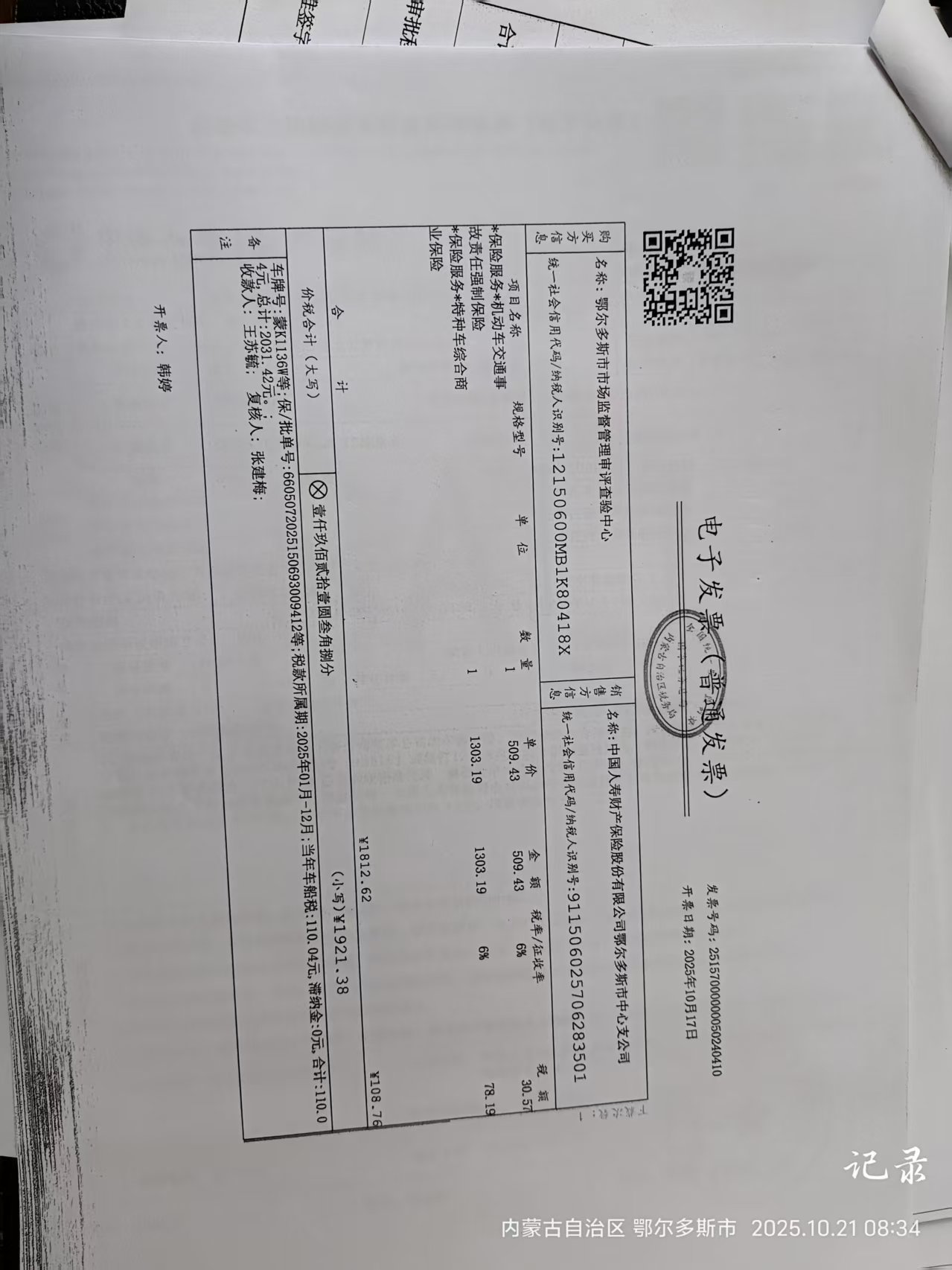 一、合同编号:*******二、合同名称:鄂尔多斯市市场监督管理审评查验中心机动车保险服务三、项目编号:鄂财购备字(电子)[****]*****号四、项目名称:机动车保险五、合同主体采购人(甲方):鄂尔多斯市市场监督管理审评查验中心 地址:鄂尔多斯市康巴什区 联系方式:*********** 供应商(乙方):中国人寿财产保险股份有限公司鄂尔多斯市中心支公司 地址:内蒙古自治区鄂尔多斯市东胜区内蒙古自治区鄂尔多斯市东胜区天骄街道鄂托克西街北迎宾路东鑫隆综合商务楼**楼西北侧 **楼整层 联系方式:*********** 六、合同主要信息主要标的: