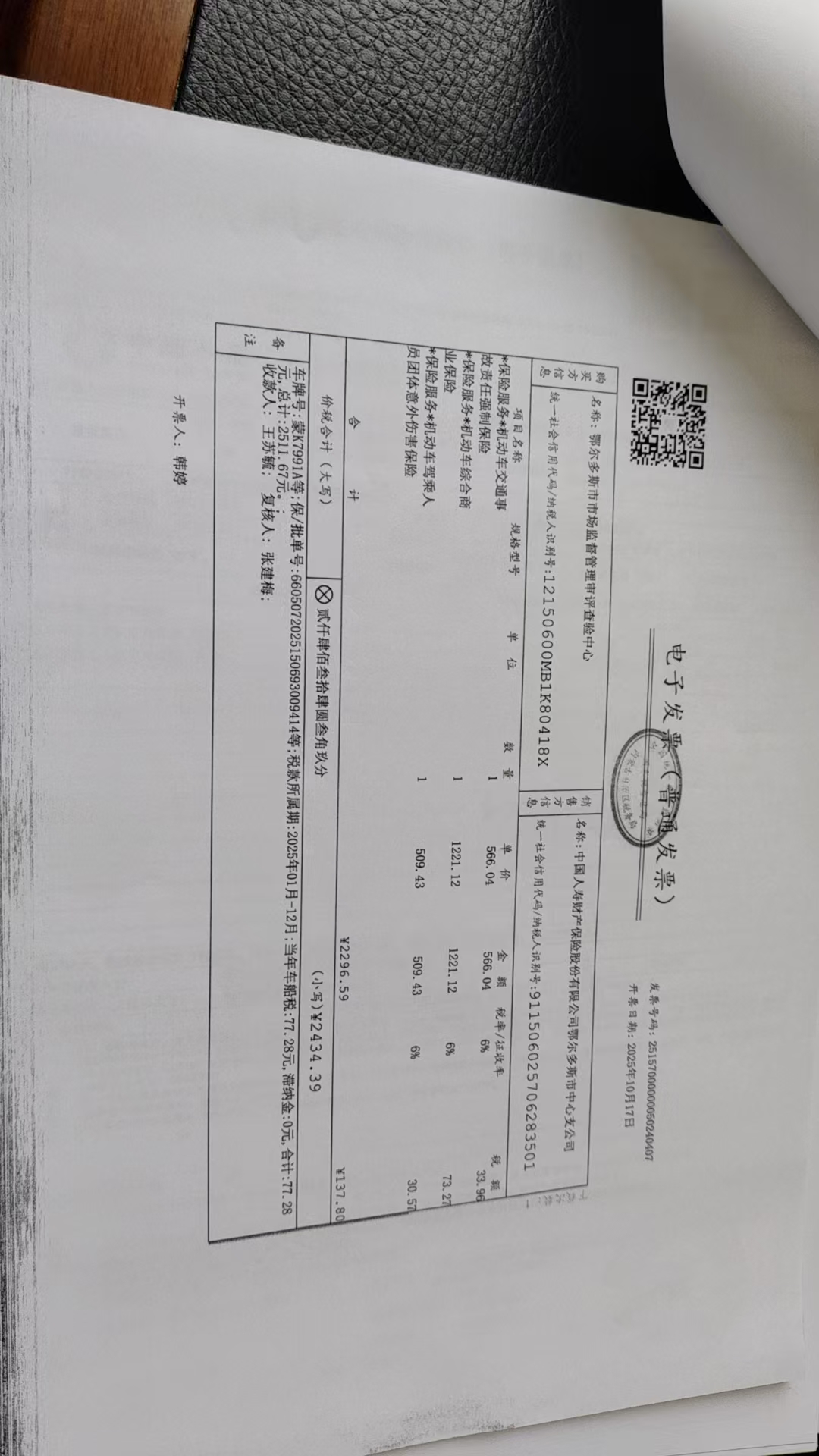 一、合同编号:*******二、合同名称:鄂尔多斯市市场监督管理审评查验中心机动车保险服务三、项目编号:鄂财购备字(电子)[****]*****号四、项目名称:机动车保险五、合同主体采购人(甲方):鄂尔多斯市市场监督管理审评查验中心 地址:鄂尔多斯市康巴什区 联系方式:*********** 供应商(乙方):中国人寿财产保险股份有限公司鄂尔多斯市中心支公司 地址:内蒙古自治区鄂尔多斯市东胜区内蒙古自治区鄂尔多斯市东胜区天骄街道鄂托克西街北迎宾路东鑫隆综合商务楼**楼西北侧 **楼整层 联系方式:*********** 六、合同主要信息主要标的: