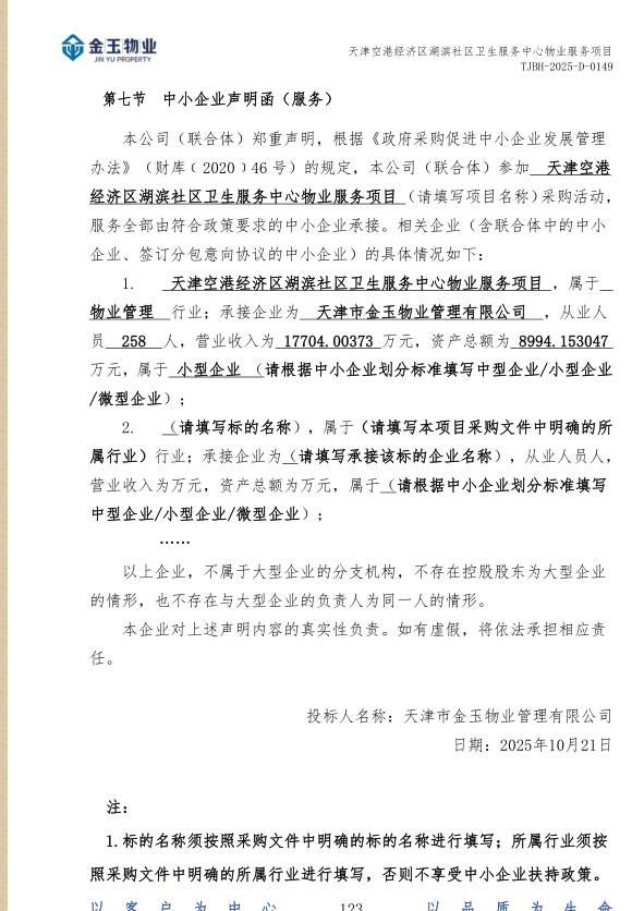天津空港经济区湖滨社区卫生服务中心物业服务项目(项目编号:TJBH-...