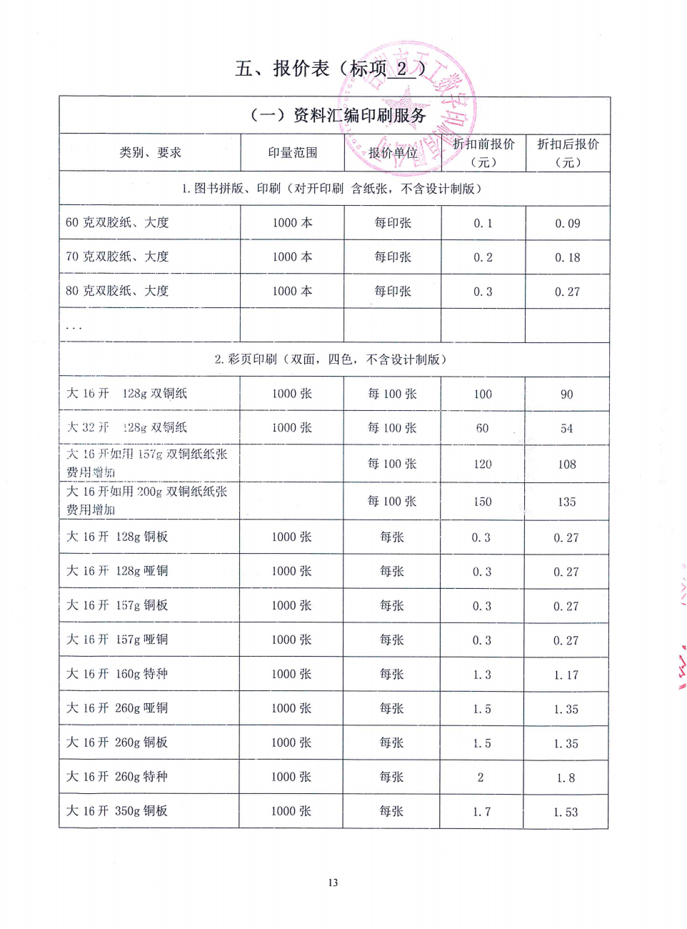 印刷服务(其他印刷品)