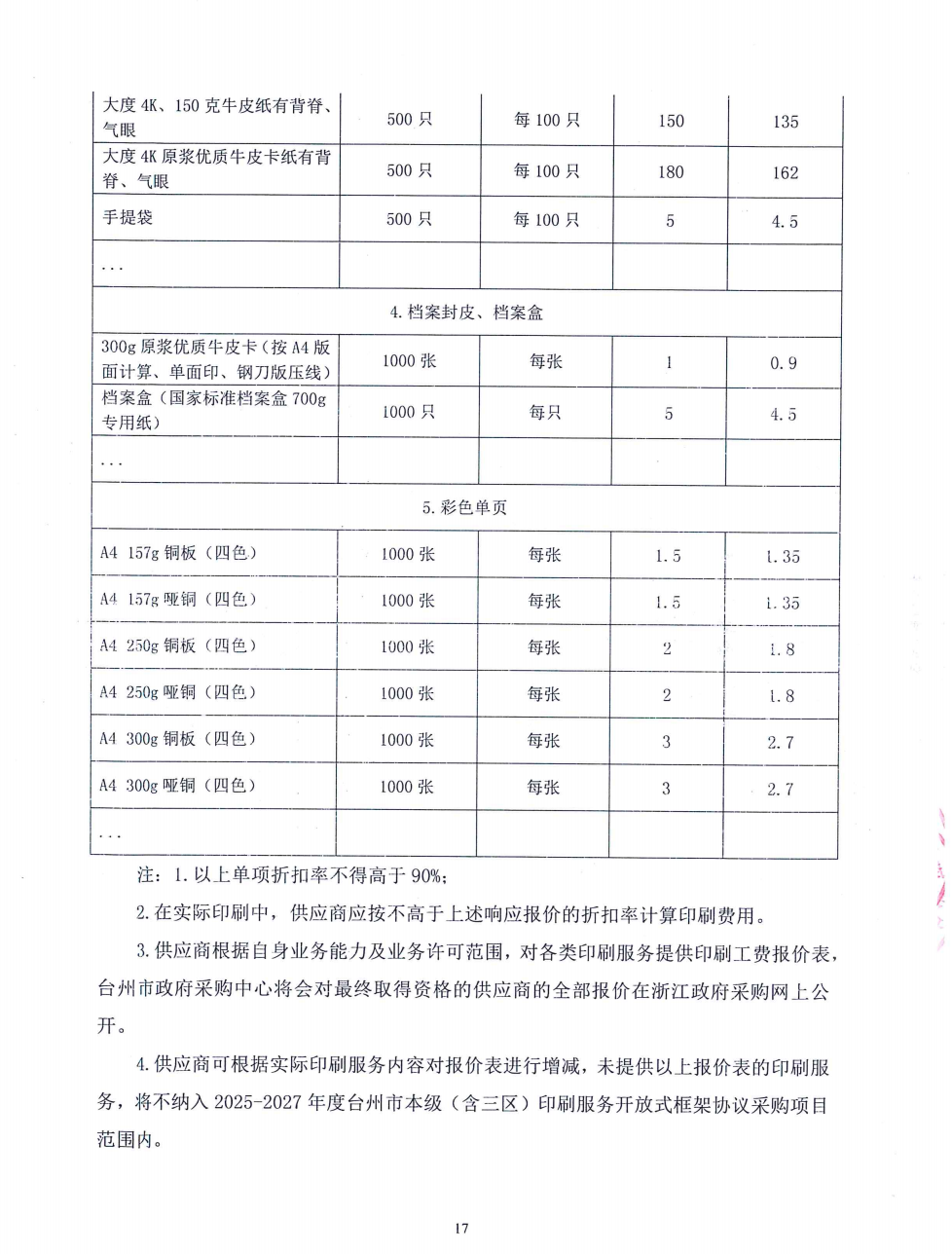 项目名称:*********年度台州市本级(含三区)印刷服务开放式框架协议采购项目