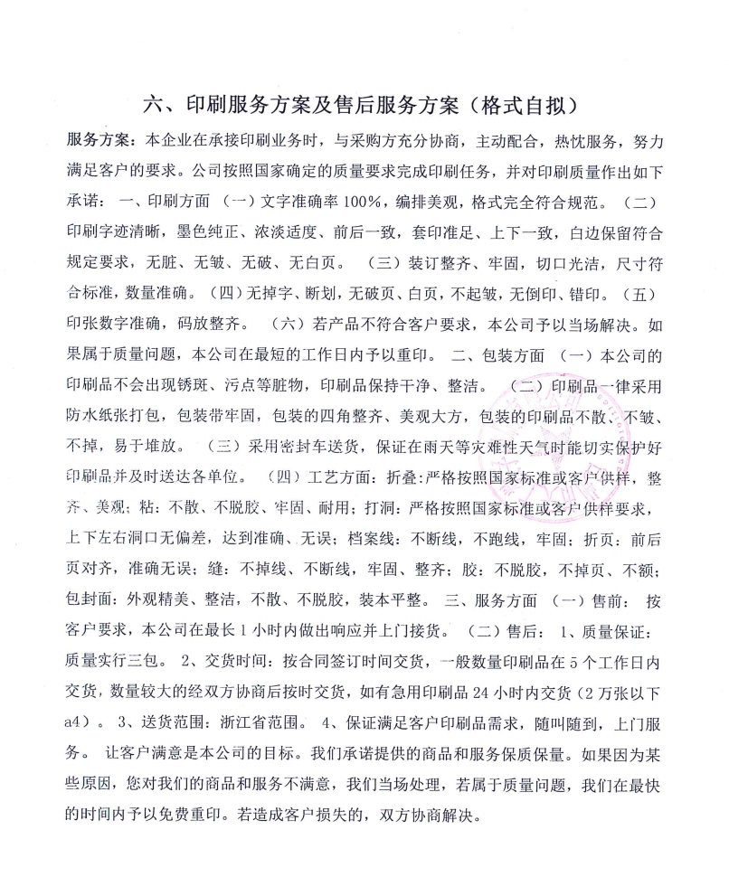 印刷服务方案及售后服务方案: