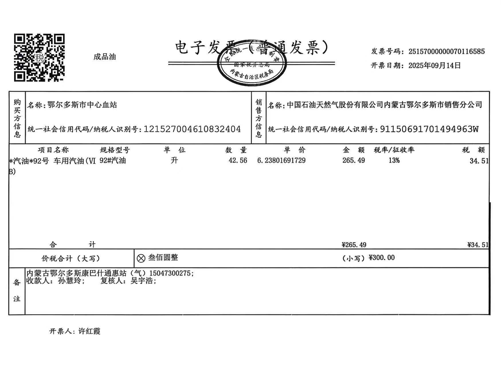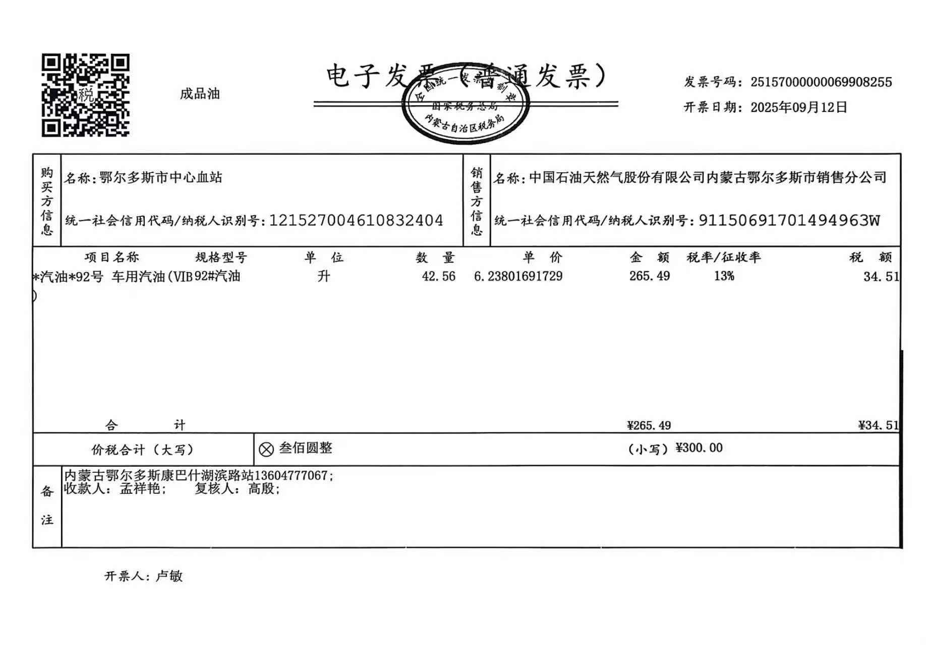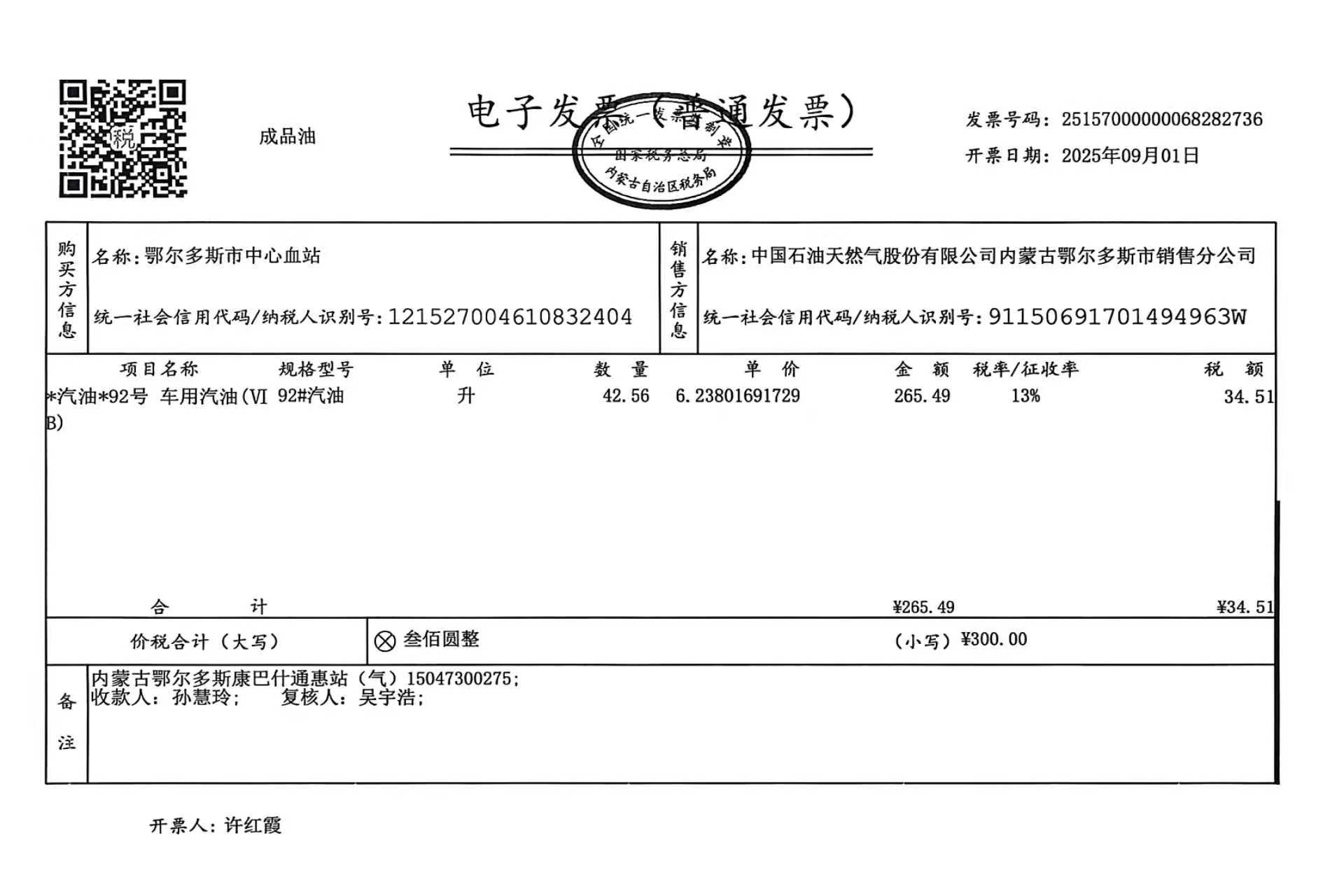 鄂尔多斯市中心血站蒙K93X59车辆九月用油政府采购合同公告