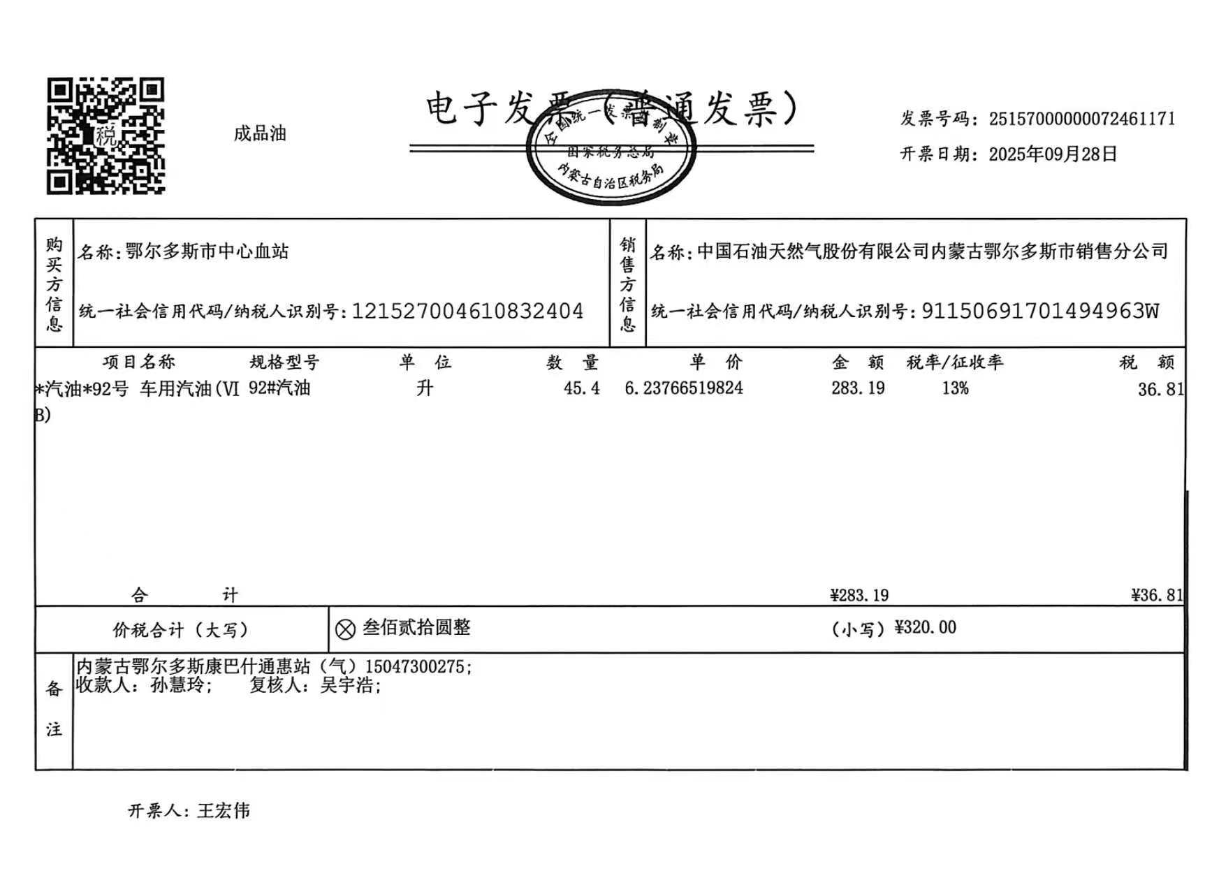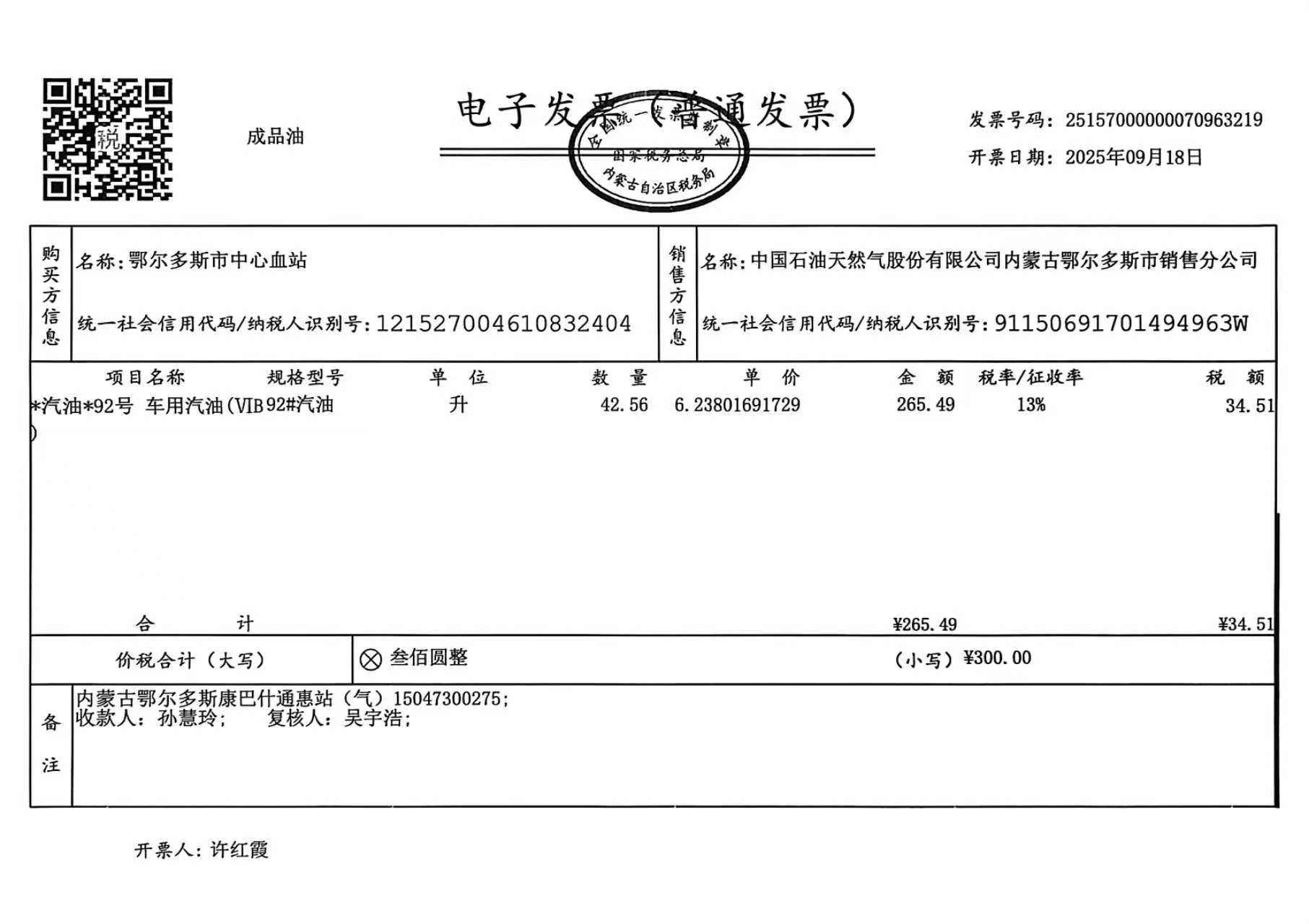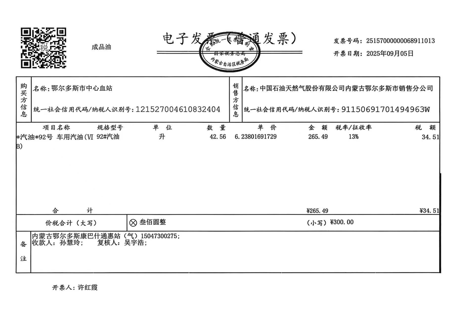 鄂尔多斯市中心血站蒙K93X59车辆九月用油政府采购合同公告
