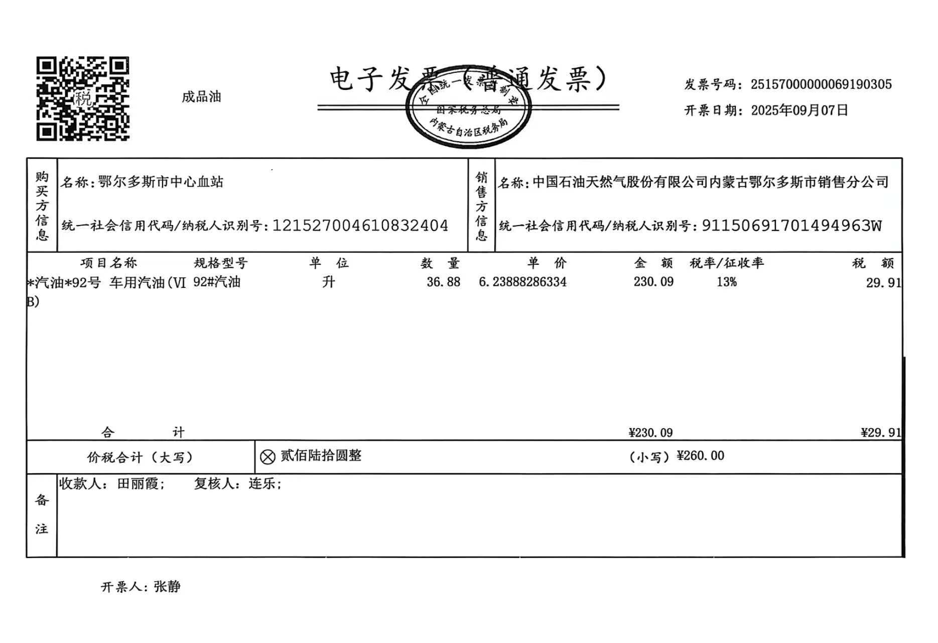 鄂尔多斯市中心血站蒙******车辆九月用油政府采购合同公告