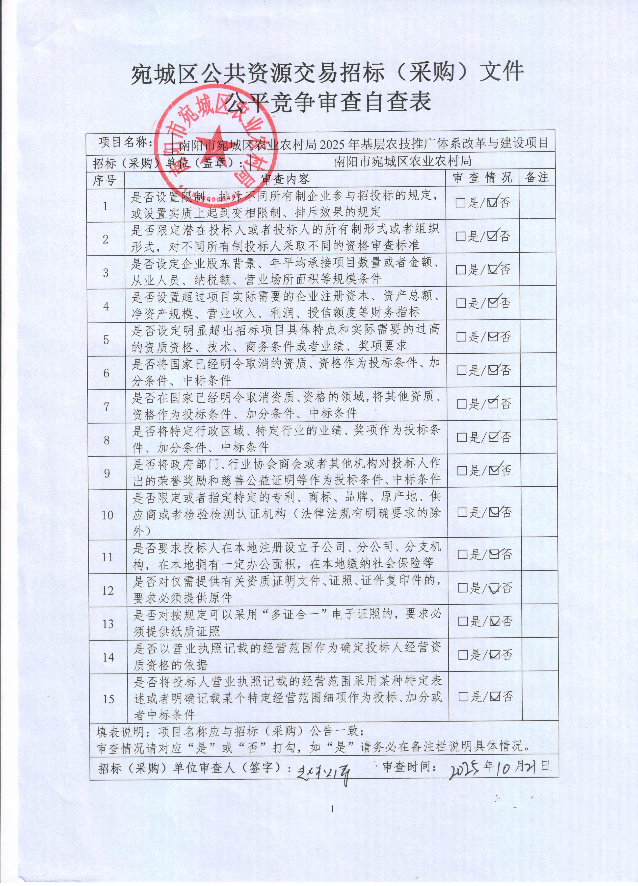 南阳市宛城区农业农村局2025年基层农技推广体系改革与建设项目-公开招标公告
