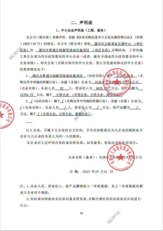 | *、采购项目名称:漯河市普通公路新型基础设施项目 | |||||||||||||||||||||||||||||||