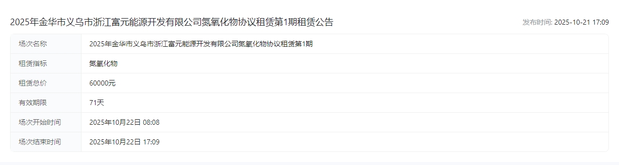 华市义乌市浙江富元能源开发有限公司氮氧化物协议租赁第1期租赁公告