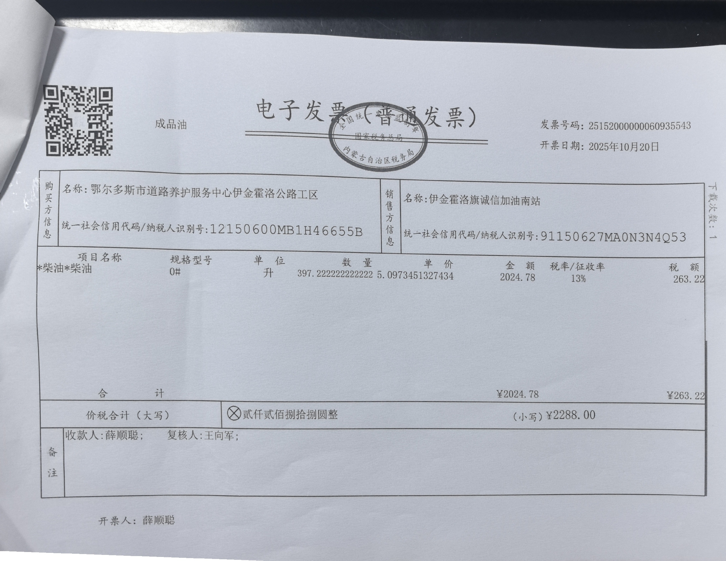 鄂尔多斯市道路养护服务中心伊金霍洛公路工区车辆加油(台格庙养护站)政府采购合同公告
