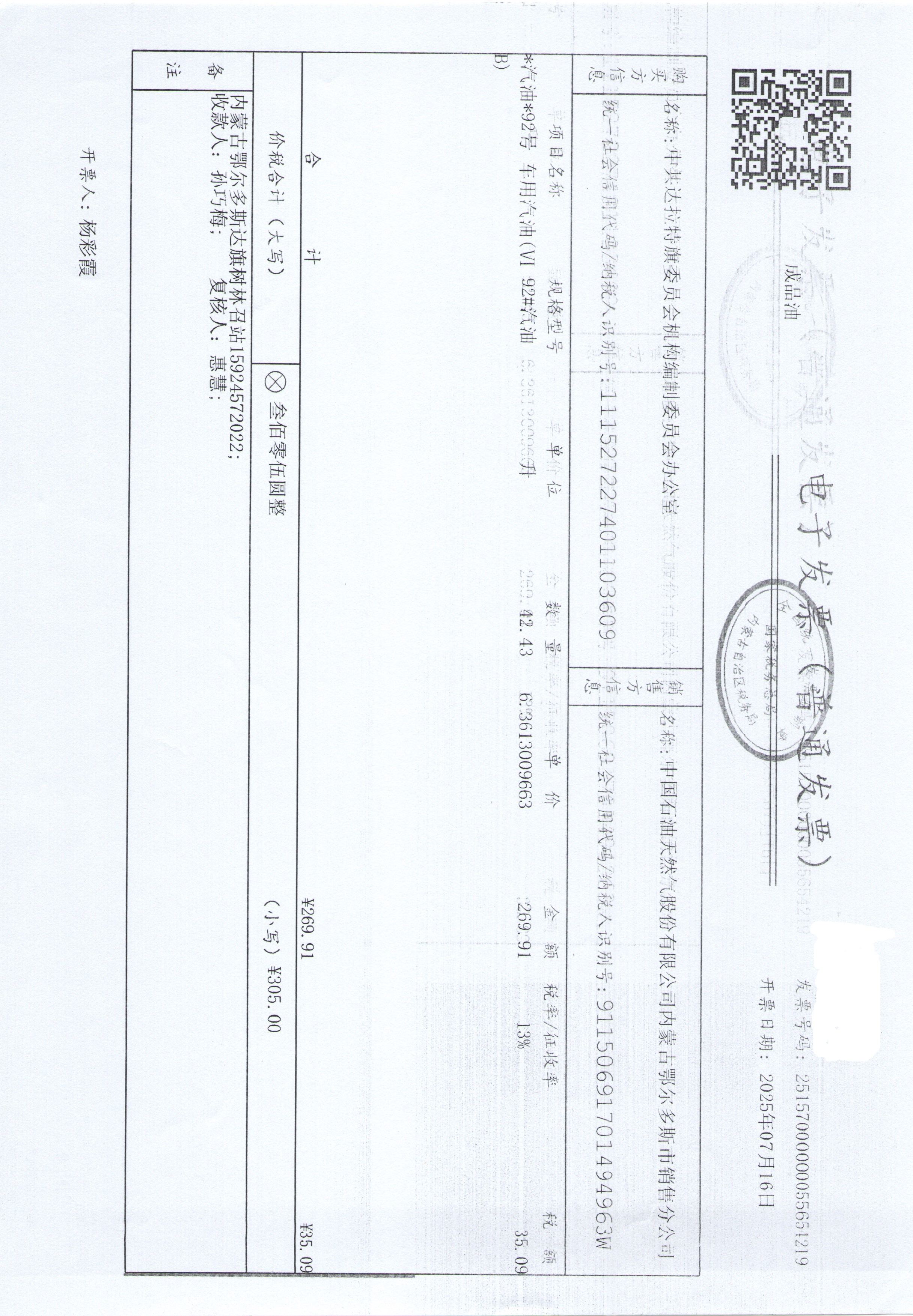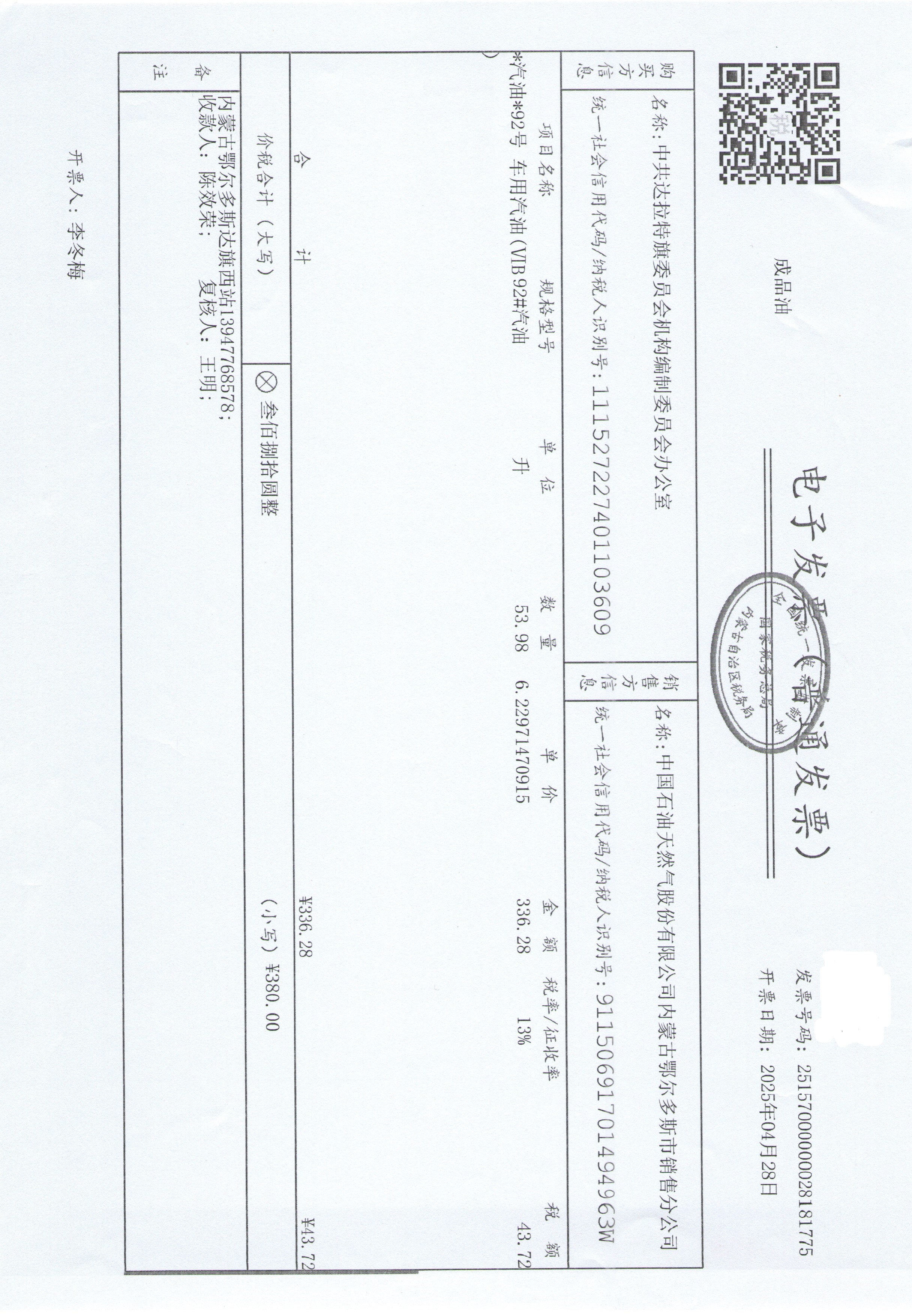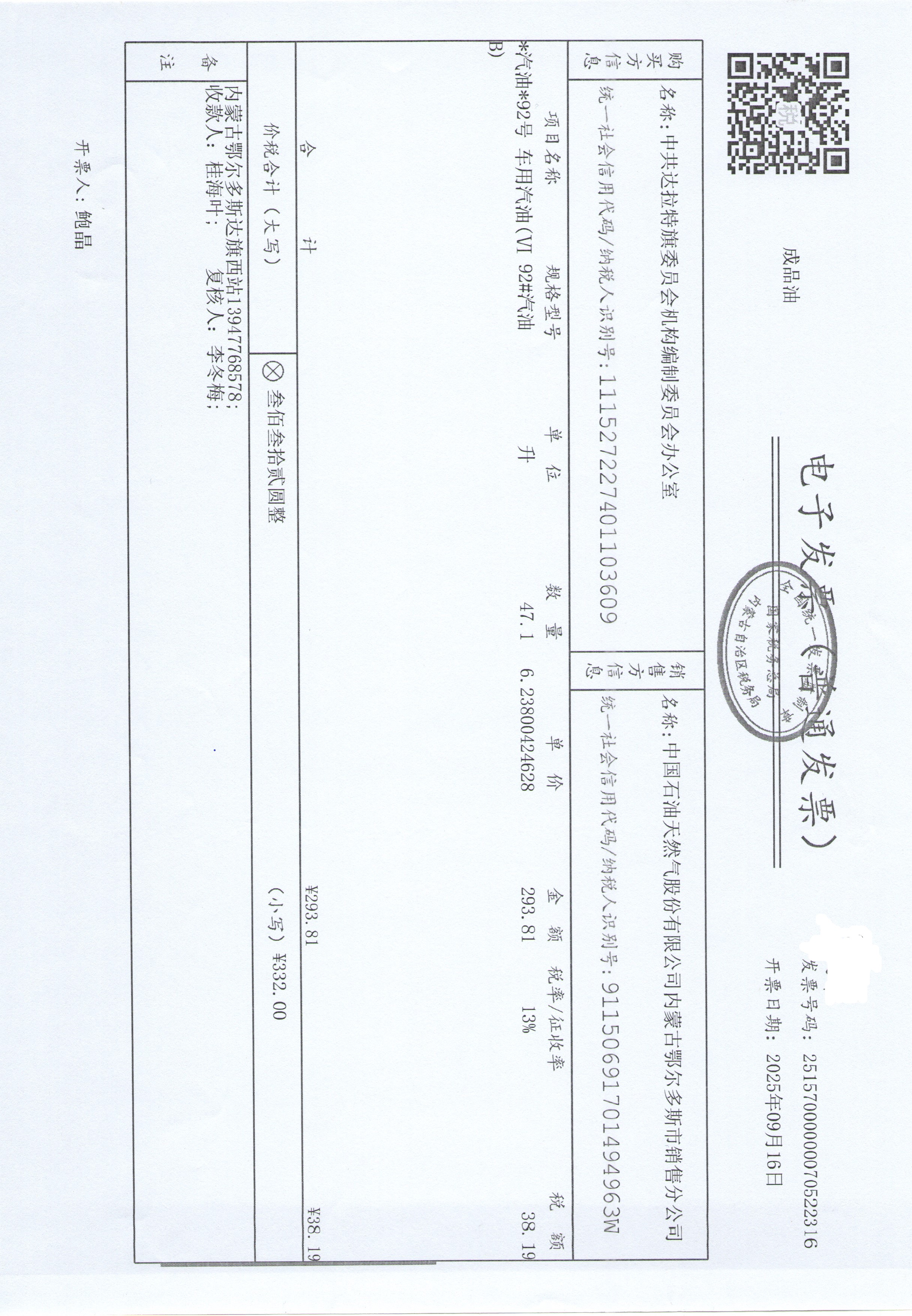 中共达拉特旗委员会机构编制委员会办公室车辆加油服务政府采购合同公告