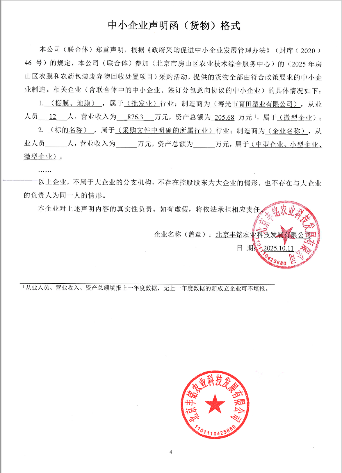 中标供应商名称:北京丰铭农业科技发展有限公司(企业类型:微型)