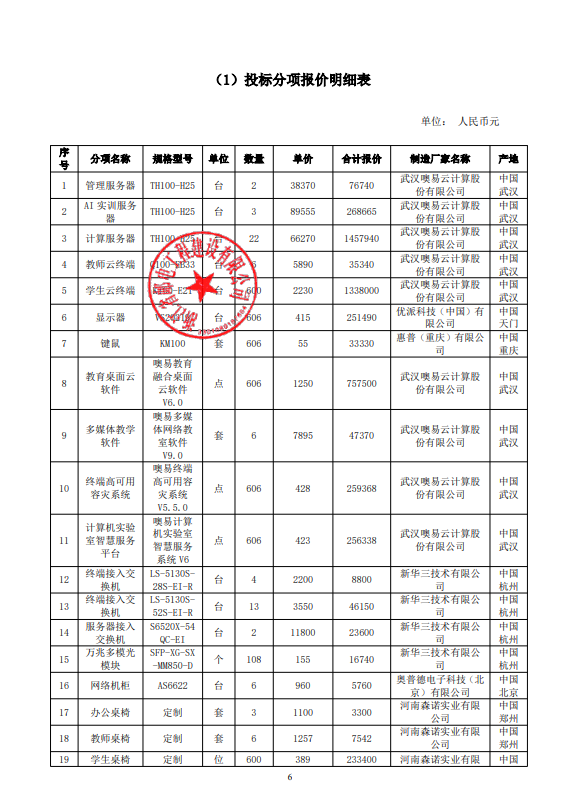| *、采购内容:河南城建学院公共计算机教学实验室建设项目(具体详见招标文件)。 *、资金来源:财政资金,已落实。 *、交货期 :合同签订后**日内完成全部设备交付。 *、质保期 :设备质保期限均为合同生效后叁年。 *、质量要求:合格,满足采购人的验收标准。 | |||||||||||||||||||||||||||||||
