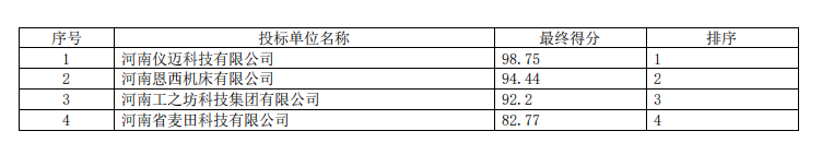 河南工业职业技术学院设备更新*智能制造工程技术中心三期(工业机械装调与控制实训系统)项目*中标公告