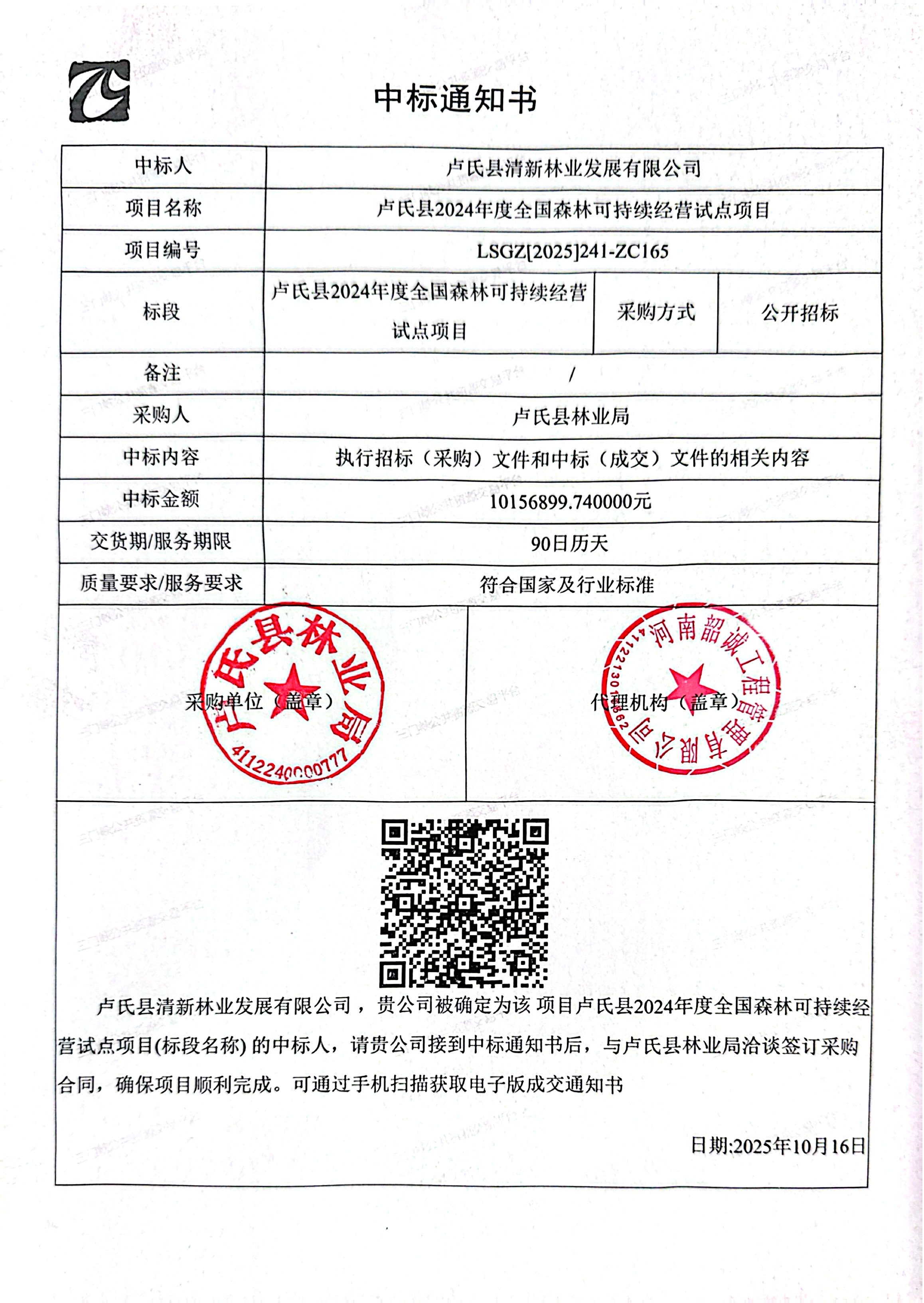 | *.供应商(乙方):卢氏县清新林业发展有限公司 | ||||||||||||