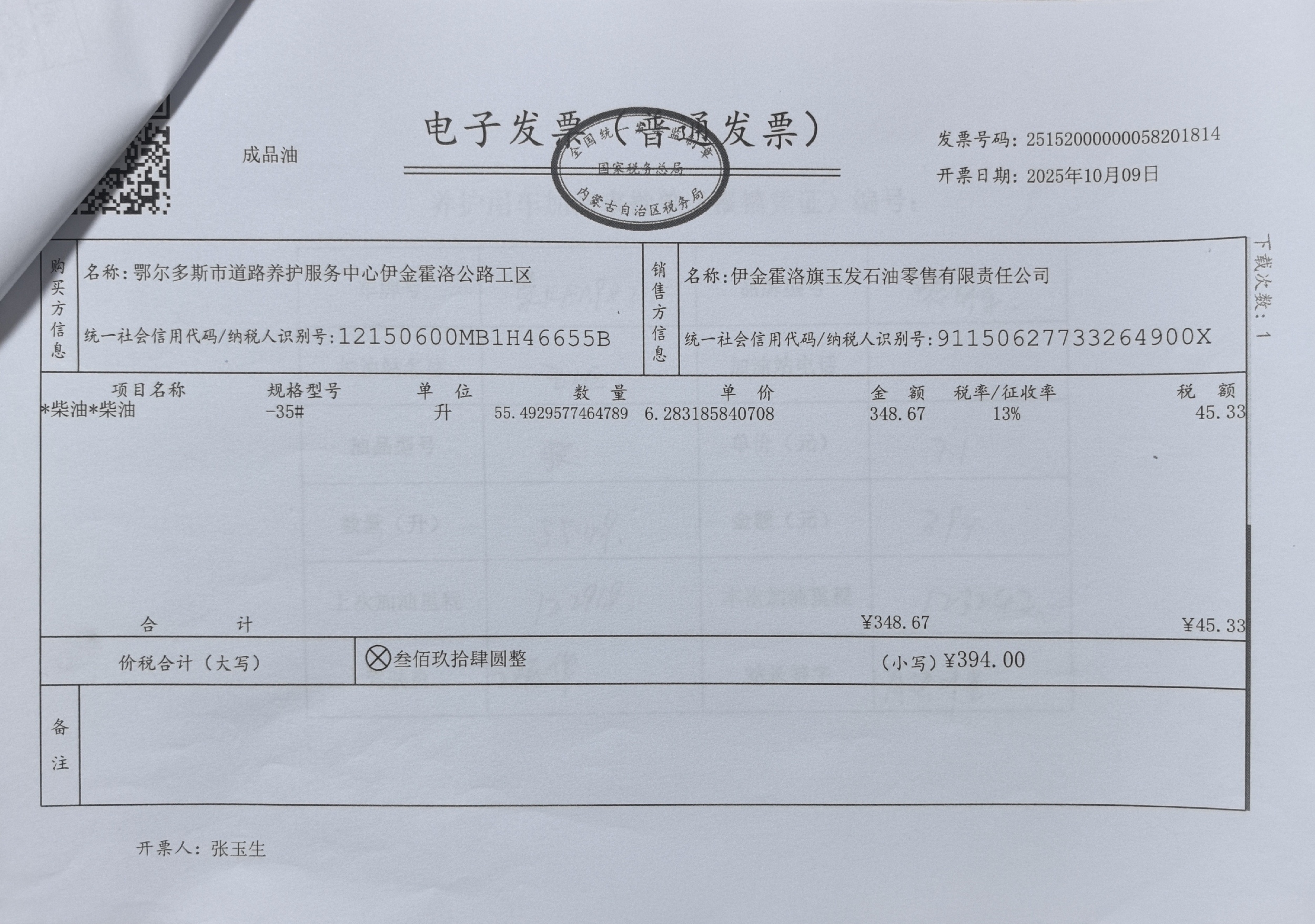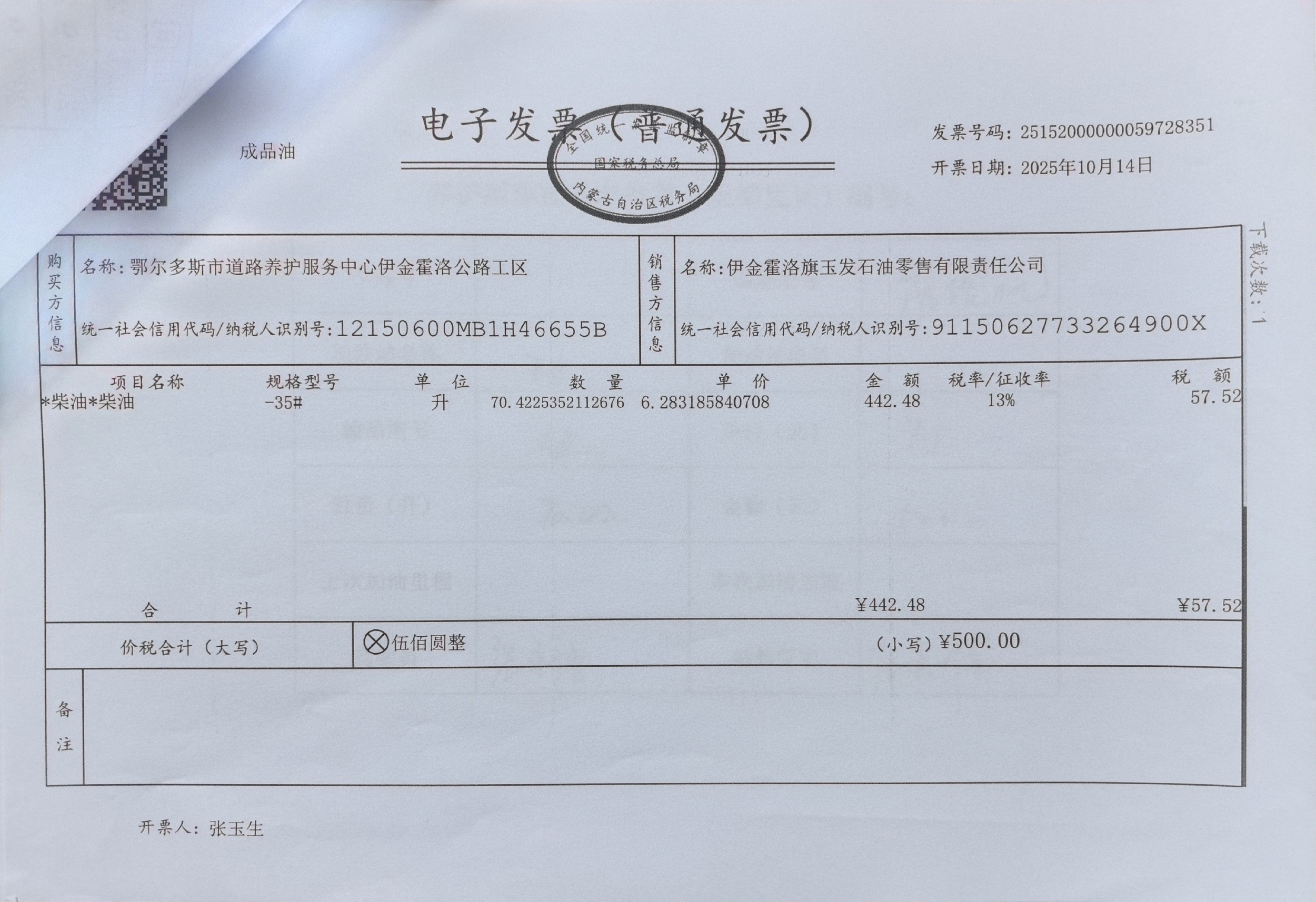 鄂尔多斯市道路养护服务中心伊金霍洛公路工区车辆加油(新街养护站210线)政府采购合同公告