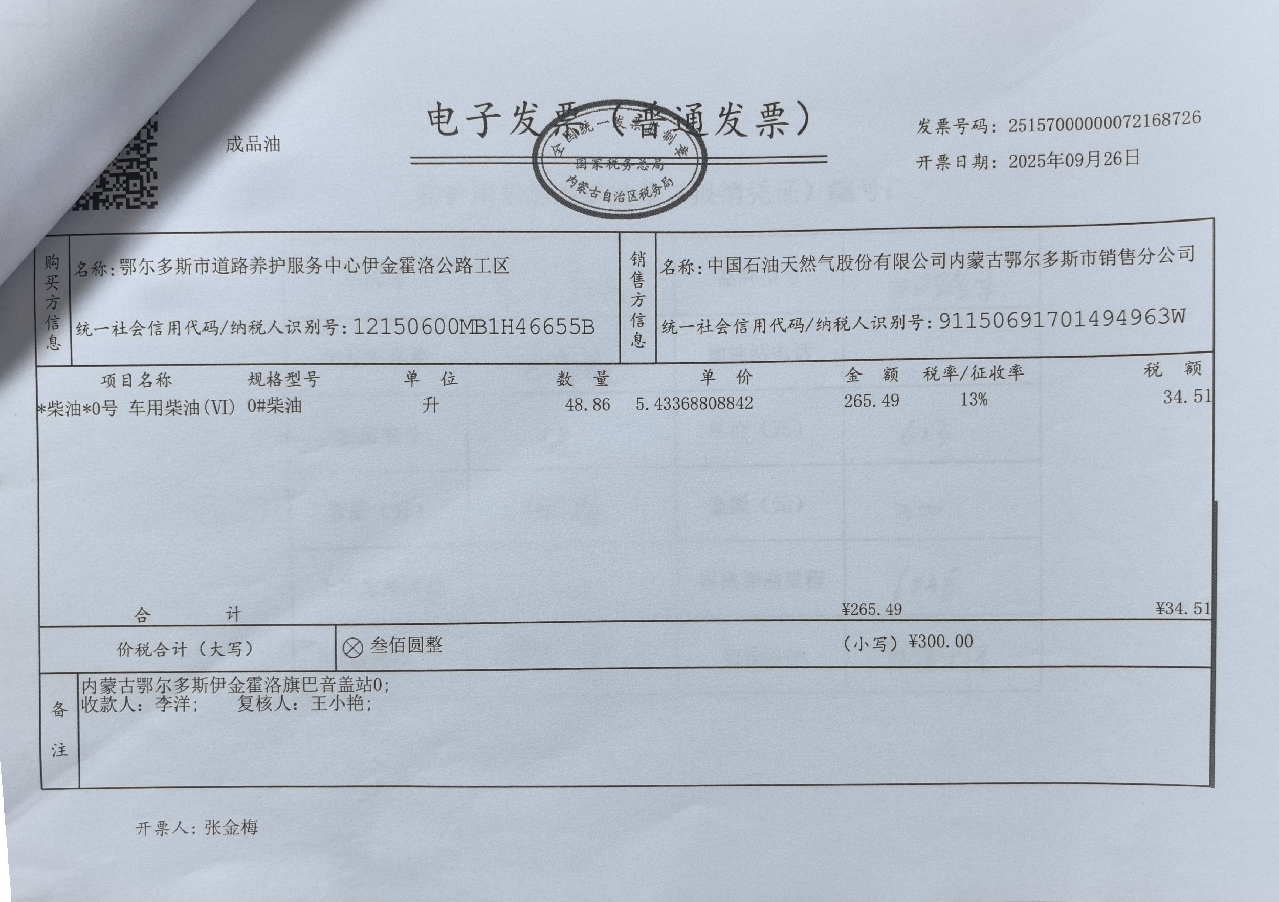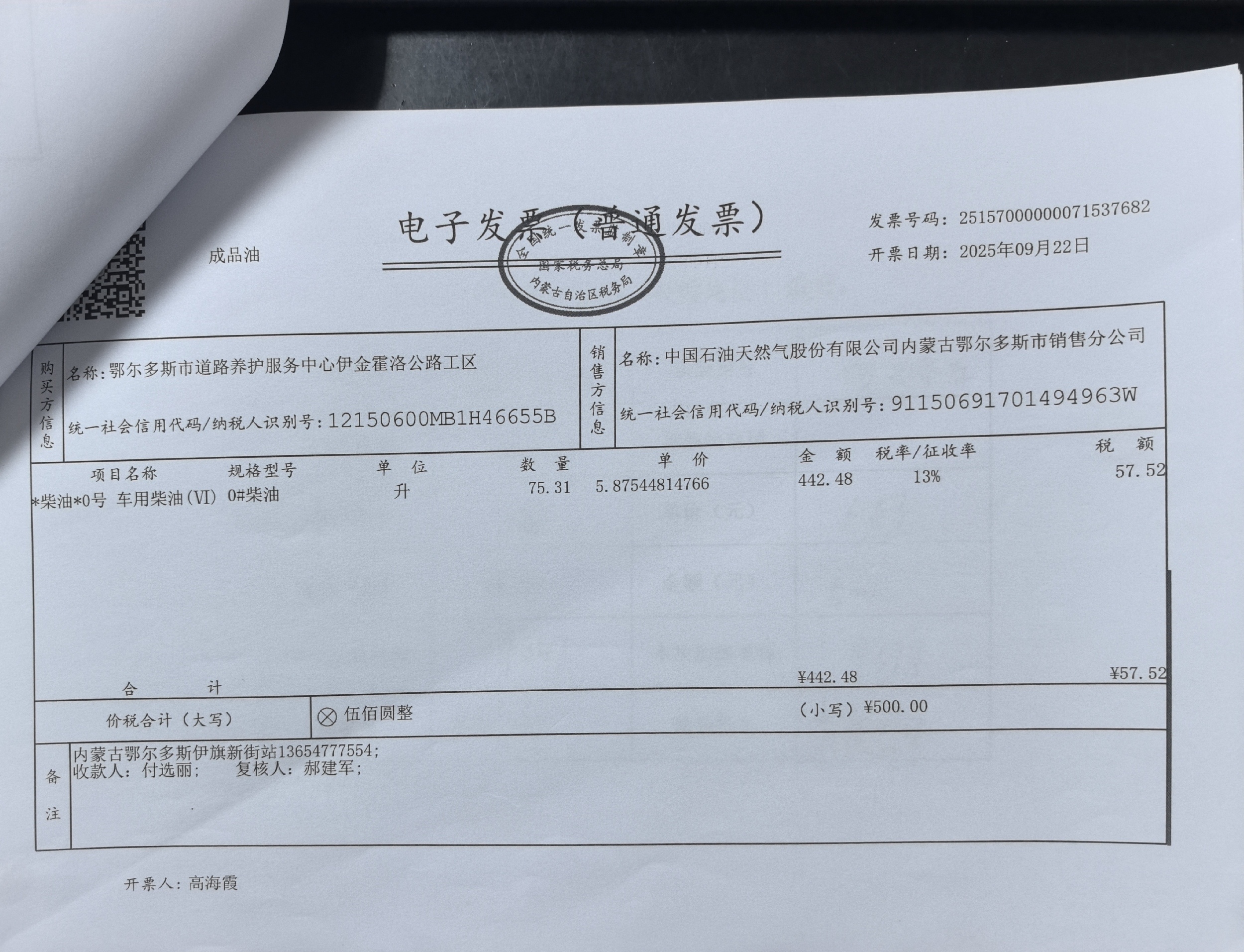 鄂尔多斯市道路养护服务中心伊金霍洛公路工区车辆加油(新街养护站***线)政府采购合同公告