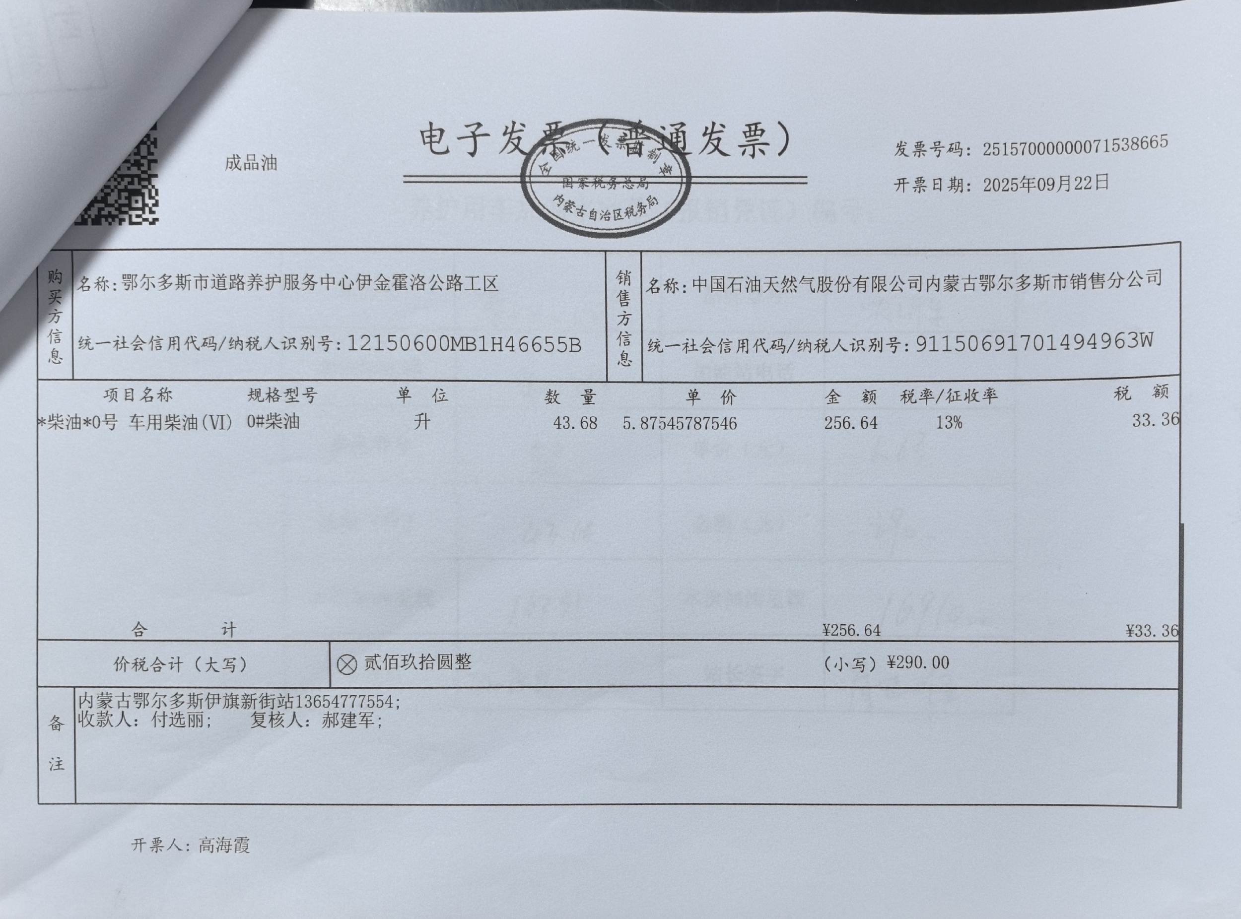 鄂尔多斯市道路养护服务中心伊金霍洛公路工区车辆加油(新街养护站210线)政府采购合同公告