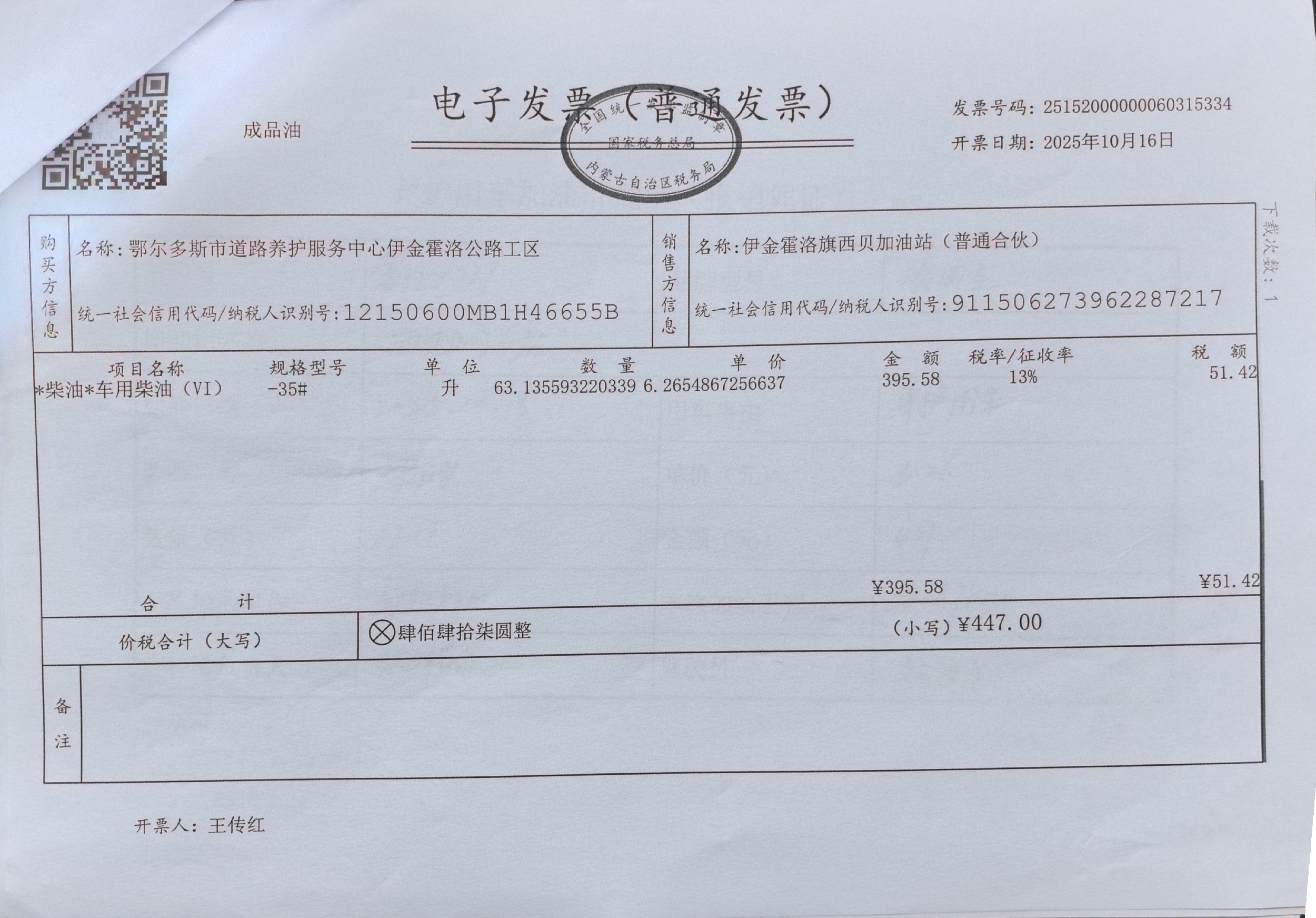 鄂尔多斯市道路养护服务中心伊金霍洛公路工区车辆加油(阿镇养护站)政府采购合同公告