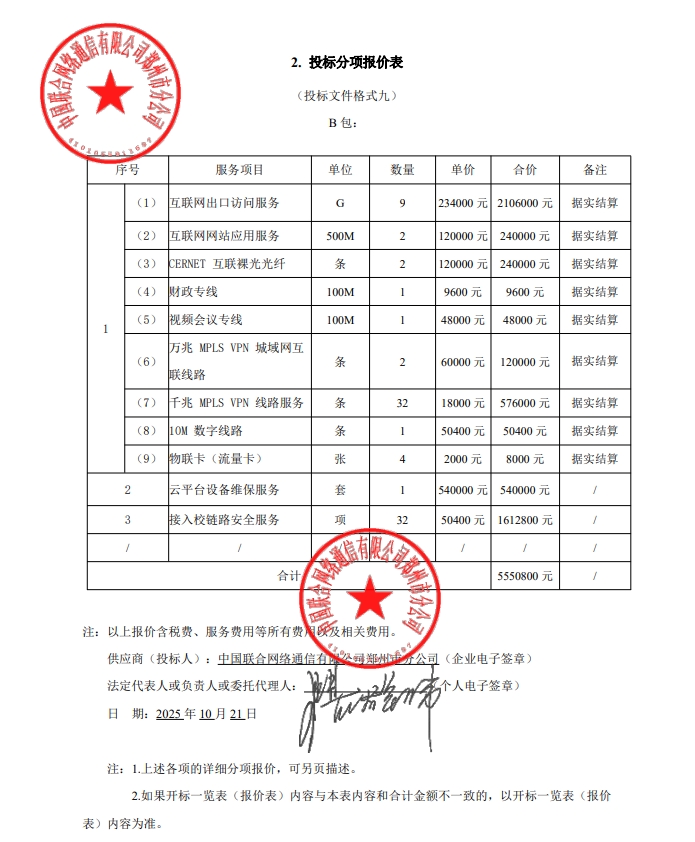 郑州市信息化教育教学中心郑州教育城域网网络线路使用费及网络安全保障服务项目*中标公告