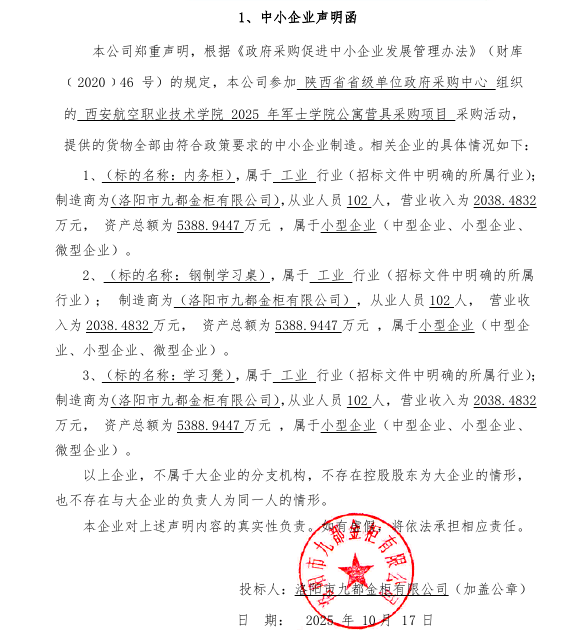 西安航空职业技术学院2025年军士学院公寓营具采购项目中标(成交)结果公告