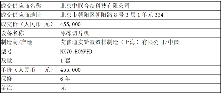 中日友好医院2025年冰冻切片机采购项目成交结果公告